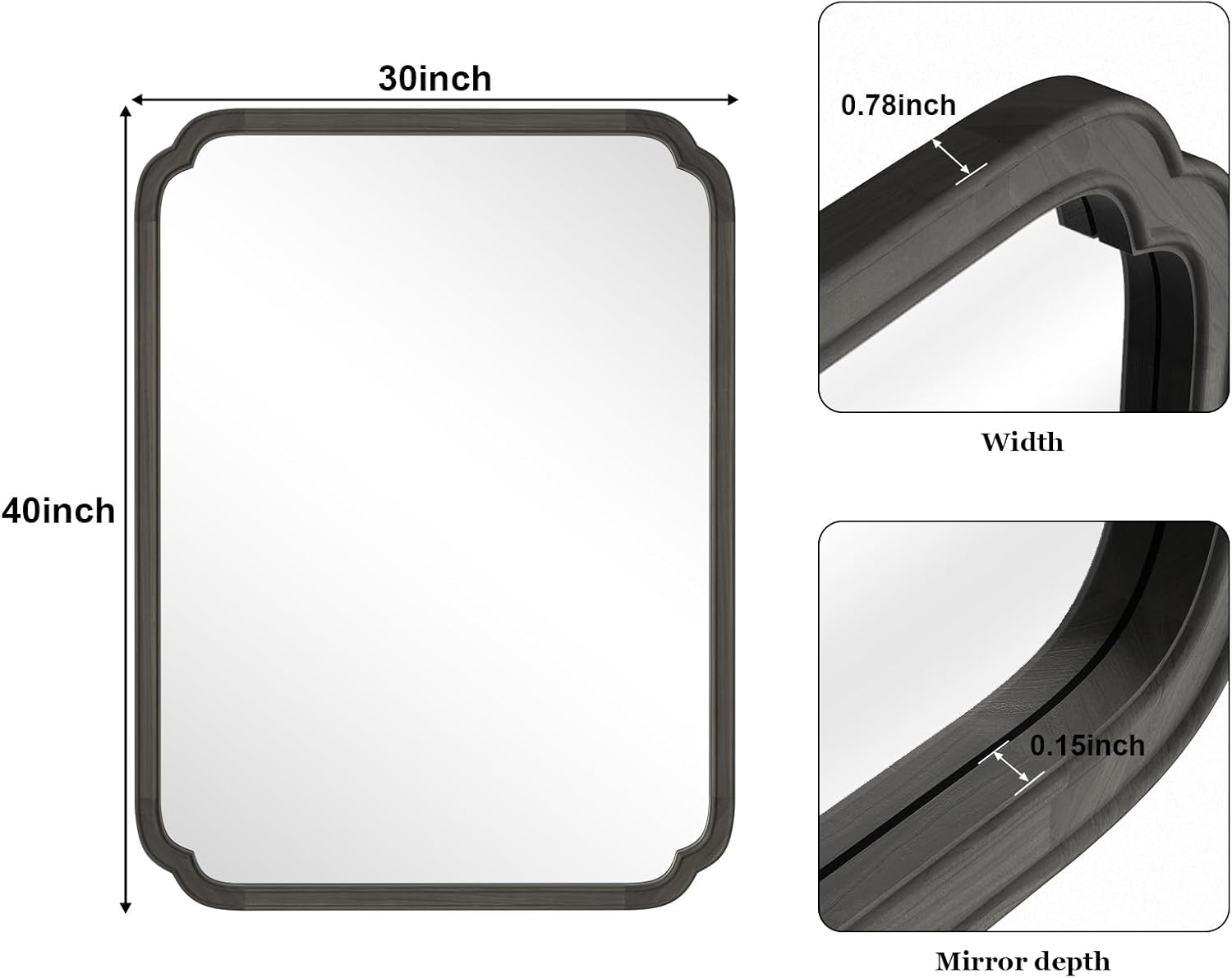 - Crystal Clear Reflection: HD silver lens provides clearer imaging and eliminates reflection distortion for a better visual experience, 30 in. Height x 40 in. Width x 1 in. Depth. The 4 attached D-ring hangers allow for horizontal or vertical installation and easy hanging