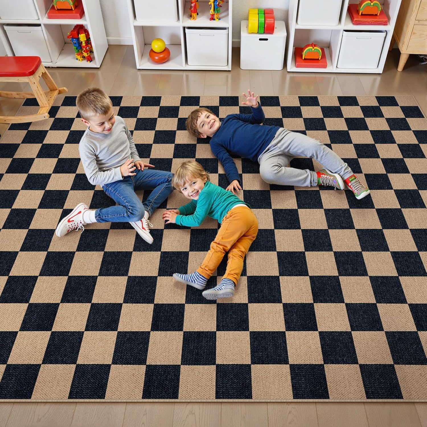 - Modern Checkered Rug: Showcasing checkerboard in black and natural colors, purposely distressed and faded geometric checkerboard design, it makes a great option for anchoring modern farmhouse aesthetics