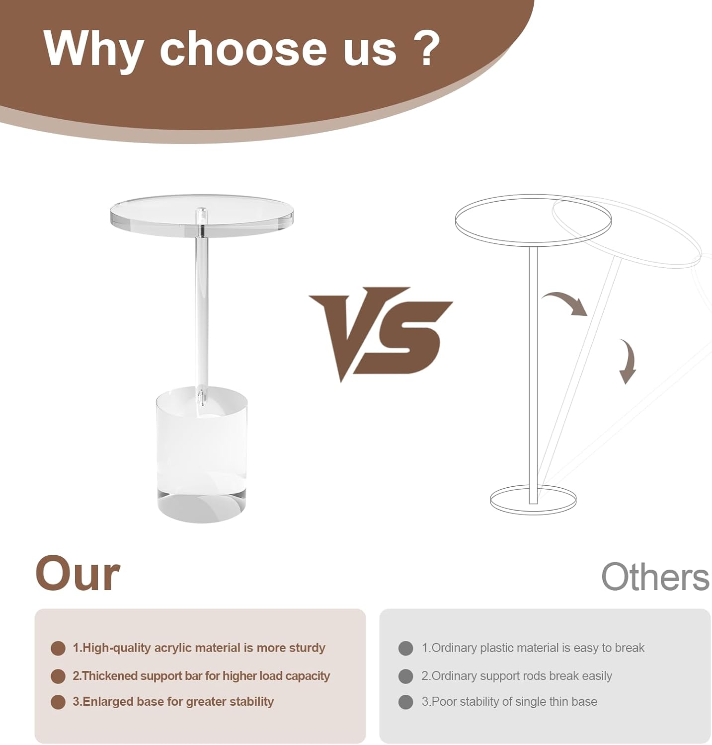 - ăWidely VersatileăThis clear side table combines acrylicâs transparency with a lightweight build, fitting seamlessly into living rooms, bedrooms, or offices. Use it as a chic nightstand, sofa snack tray, or accent pieceâits compact design allows easy movement to wherever you need it.