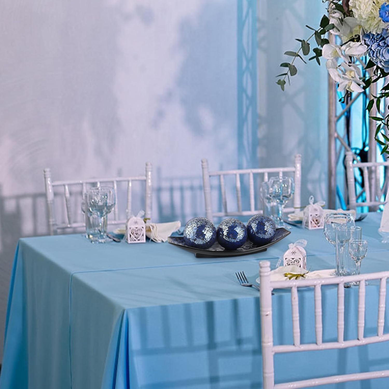 - Sparkle Mosaic Balls: 4 in sparkle glass mosaic decorative balls in the same dark blue tone with the tray, complete the centerpiece decor and make it a unique addition to your home