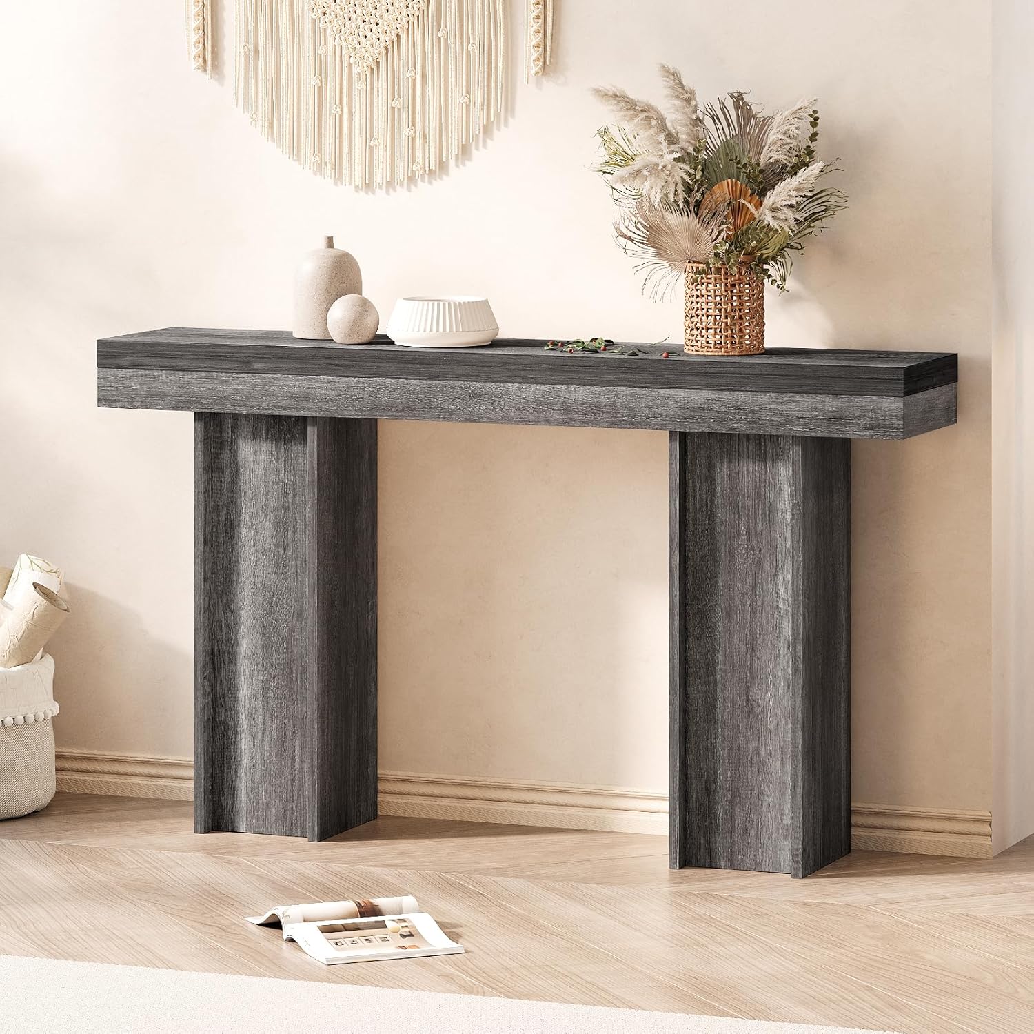 55Inch Farmhouse Console Table,Wooden Rectangular Sofa Table Behind The Couch,Entryway Console Table with Storage for Living Room, Hallway,Entrance (Grey)