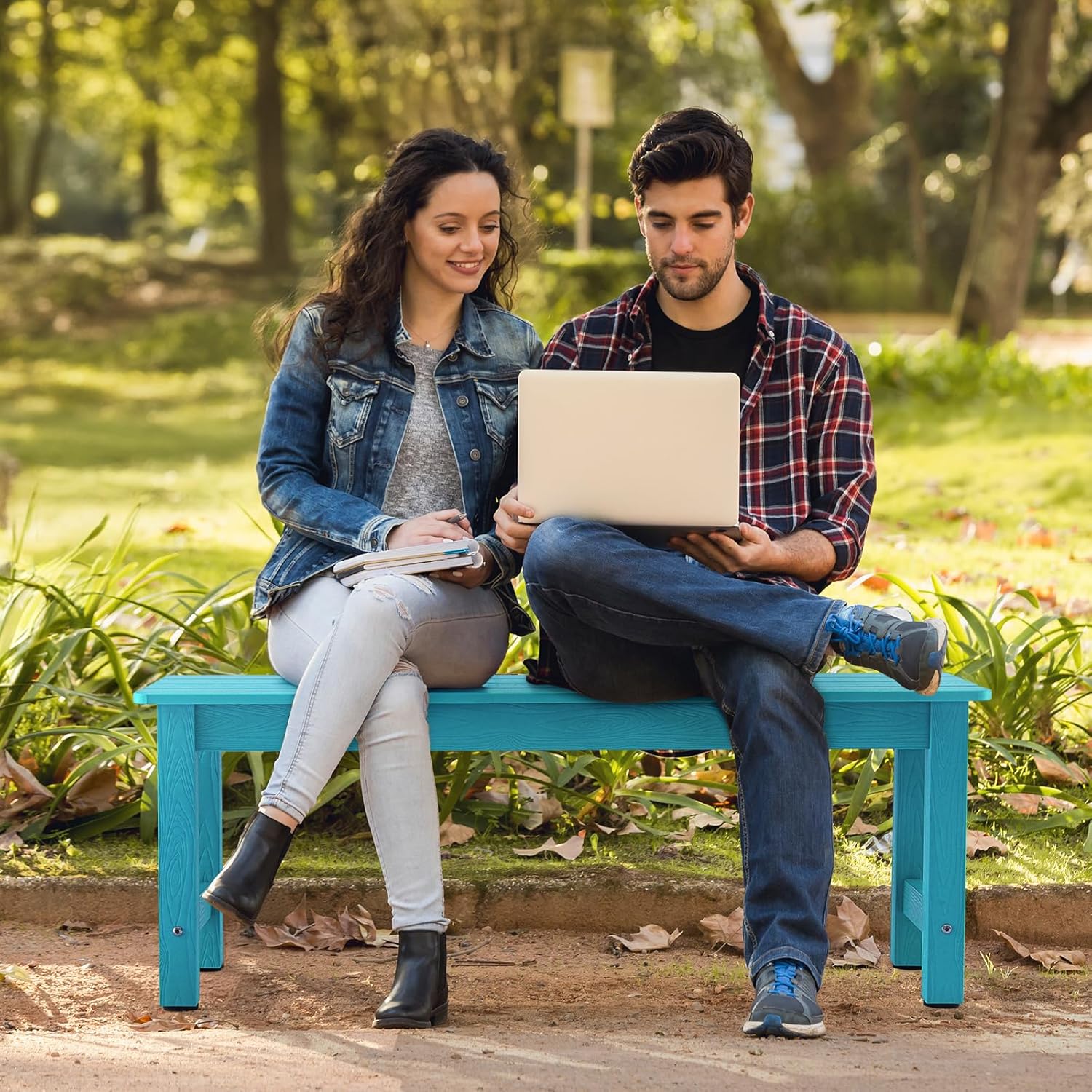 Outdoor Bench, 2-Person Poly Lumber Garden Bench, All-Weather Patio Bench Will not Rot and Fade for Garden, Porch, Backyard and Park, Easy Installation, Blue