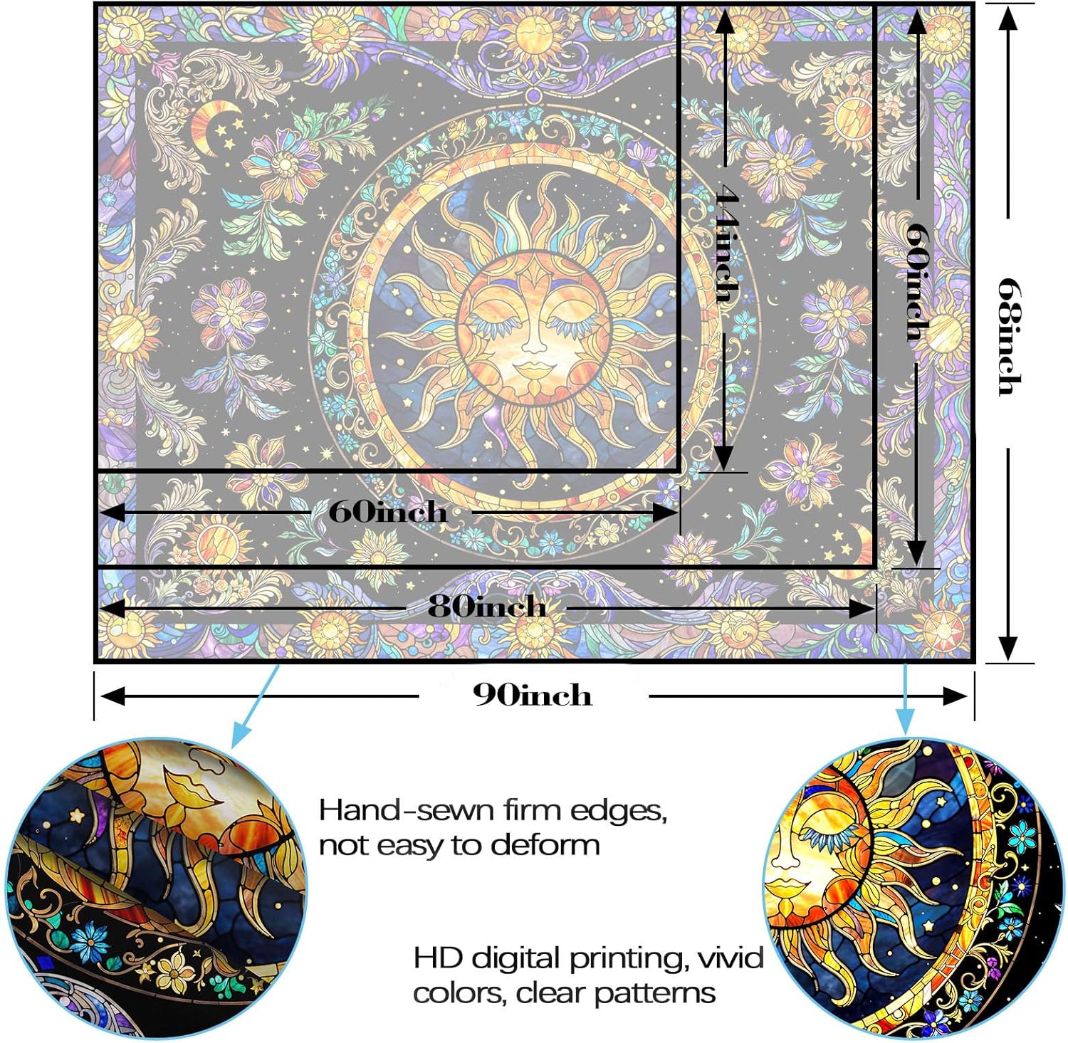 Lunerfex Sun Tapestry Stained Glass Tapestry Wall Decor Tapestries for Bedroom Boho Tapestries Wall Hanging for Bedroom Living Room Glass-Sun-01 44"x60"