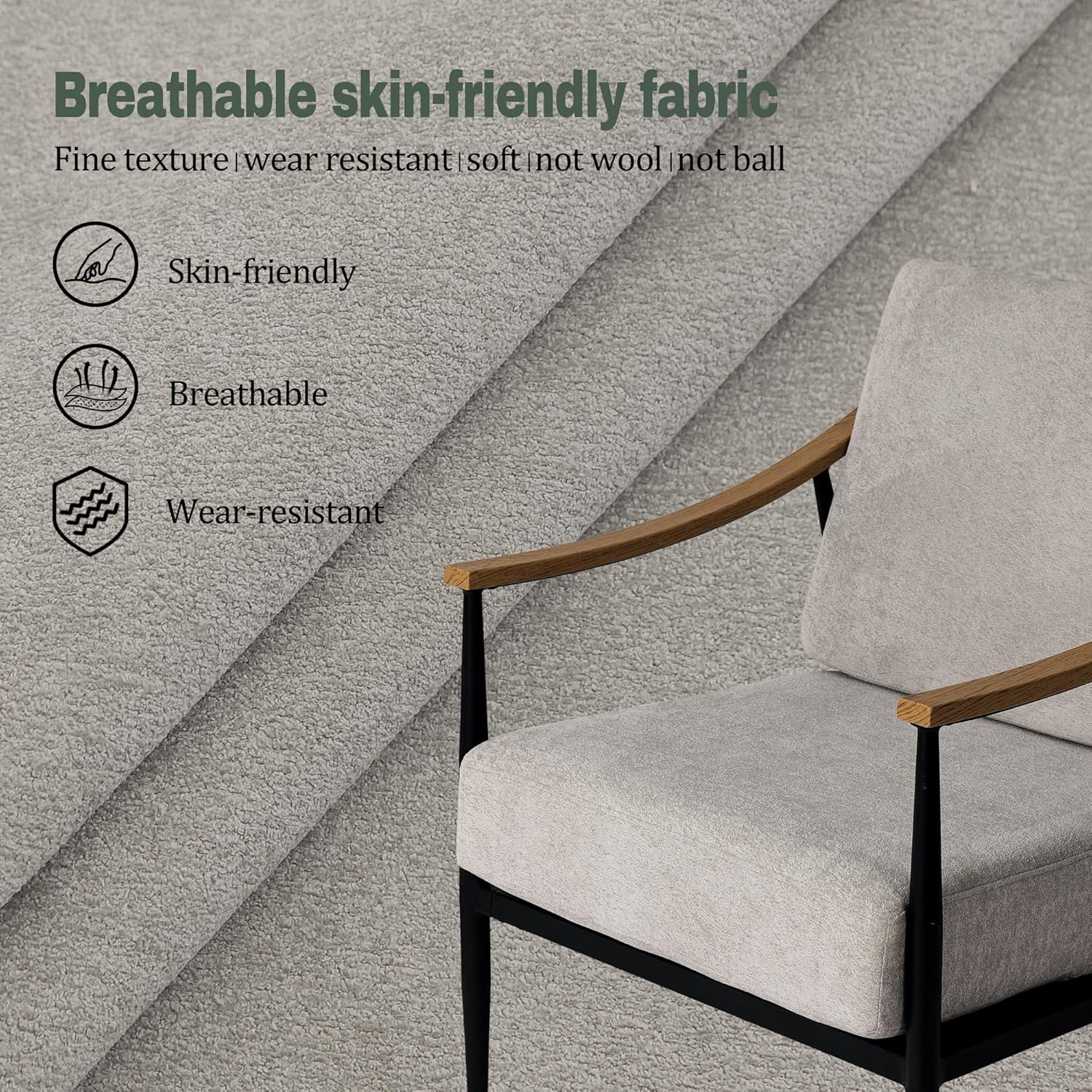 - Please Your Eyes - Designed in a unique mid-century modern style, the curved imitation wood-grain METAL armrests provide a unique and stylish look, while the solid metal frame and linen fabric add a modern touch. With a sleek and modern design that incorporates retro elements, this accent chair will add a touch of sophistication to any room