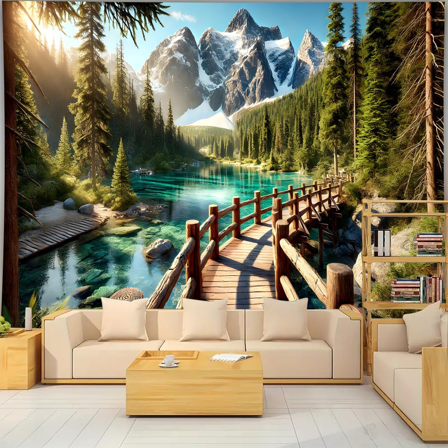 BSFHH Nature Tapestry Forest Tree Sea Cave Wall Hanging, Stream Through Rainforest Landscape Wall Art Tapestry for Bedroom Living room (Snow Scene, 110" × 87", Unframed)