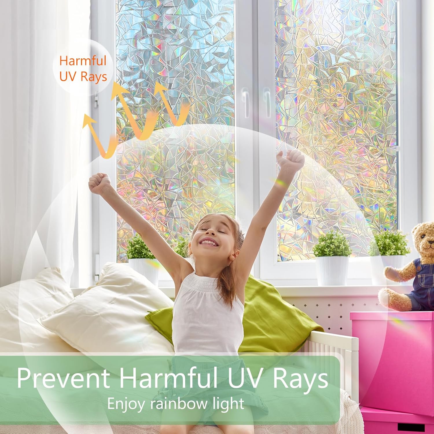 HIDBEA Window Privacy Film Static Clings, Rainbow Window Film, 3D Decals Non-Adhesive Window Vinyl Film for Home Door, 17.3 Inch x 13.1 Feet