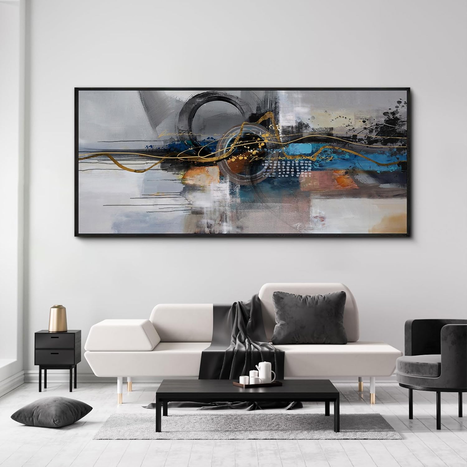 XLSJERST Oversized Wall Art for Living Room Abstract Wall Decor - City Abstract Pictures Extra Large Canvas Artwork for Bedroom Office Blue and Grey Wall Art