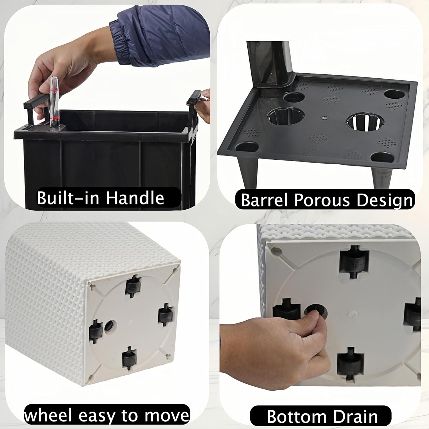 - 【Convenient Design】 Our planter pots have water inlets and hidden handles, making watering and moving the pots effortless. The inner bucket can be quickly lifted for easy access, perfectly blending functionality with modern aesthetics to meet your gardening needs.