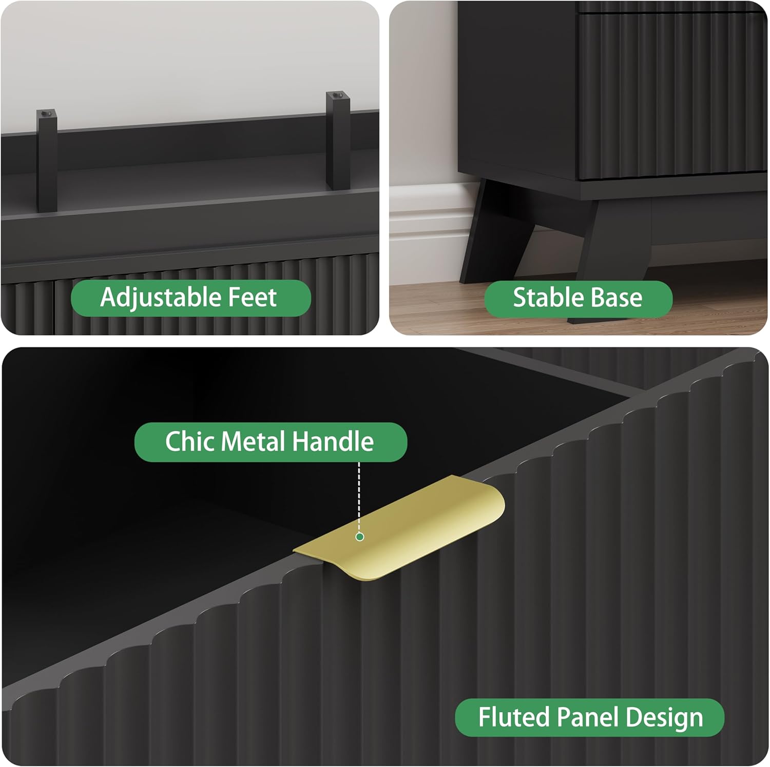 - ăStability & SafetyăThe white/black/natural oak dresser is equipped with an anti-tipping device, which can be fixed on the wall to prevent accidents. Each drawer contains a wide metal handle and built-in slide rail, easy to push and pull. Besides, the sturdy base provides this dresser with drawers a strong support and the middle feet can be adjustable to keep balance on uneven floors