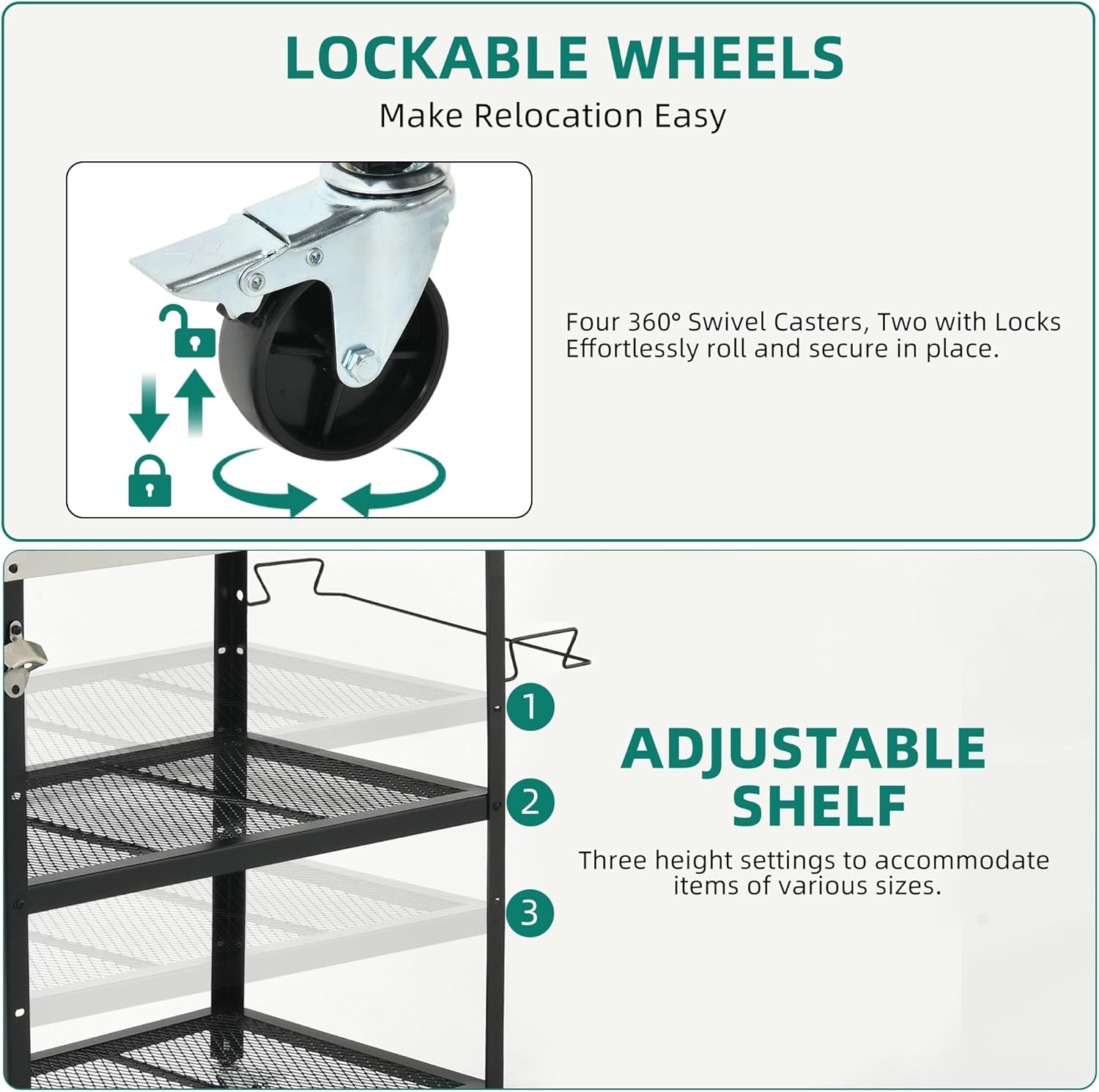 - Customizable Outdoor Utility Table: This outdoor pizza oven table serves as a grill cart, prep table, bar cart, BBQ grill table, or tool cart, allowing you to adapt it for indoor and outdoor use. The adjustable middle shelf with 3 height levels ensures organized storage