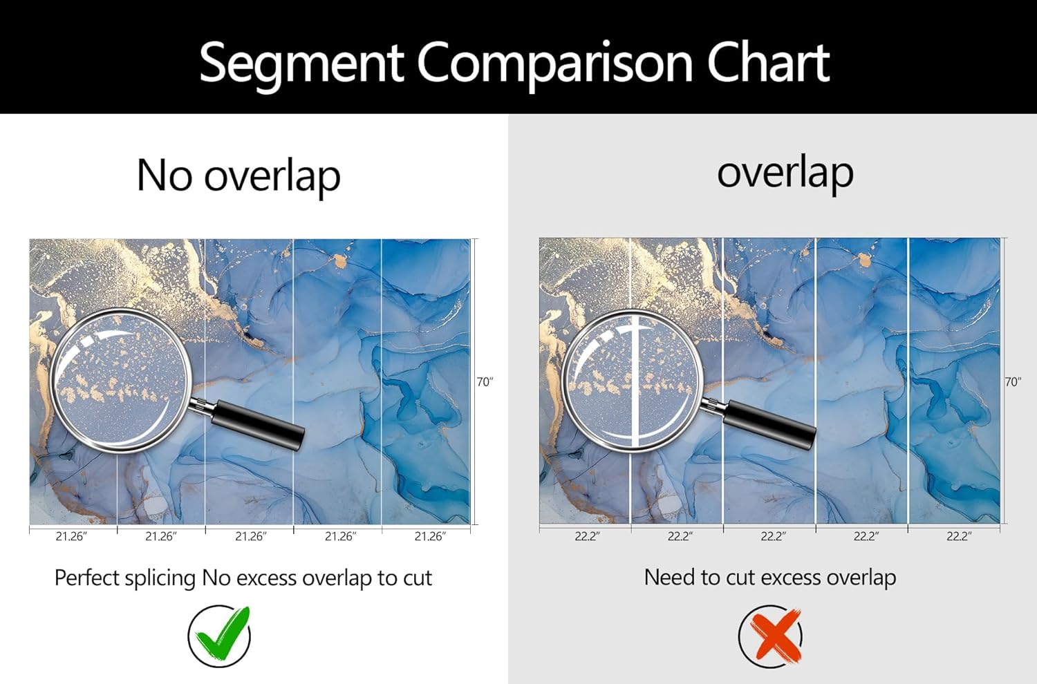 - Mural Size: The total size of this mural wallpaper is 106" x 70" / 270CM x 178CM (W x H), cut into 5 pieces, each measuring 21.26" x 70", for easy installation.