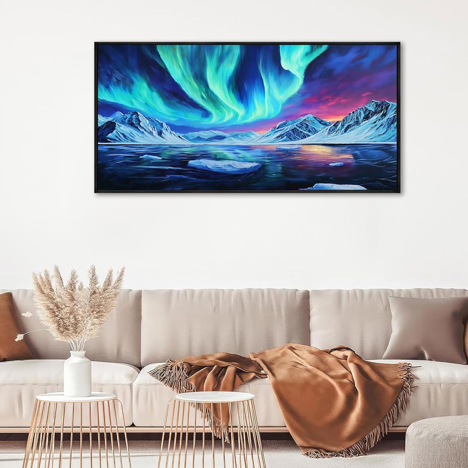yiijeah Canvas Wall Art - Living Room Wall Decor Blue Aurora Scenery Paintings Framed Wall Pictures Artowrk for Walls Bedroom Nature Waterfall Landscape for Office Home Decor