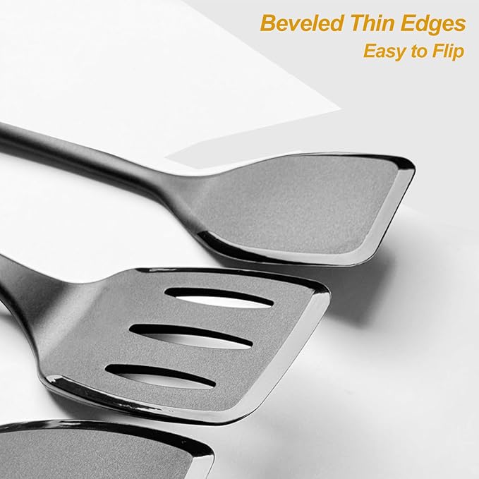 - Easy to Use: This set of cooking utensils spatulas has flexible blade and beveled thin edge, easier to slide under foods