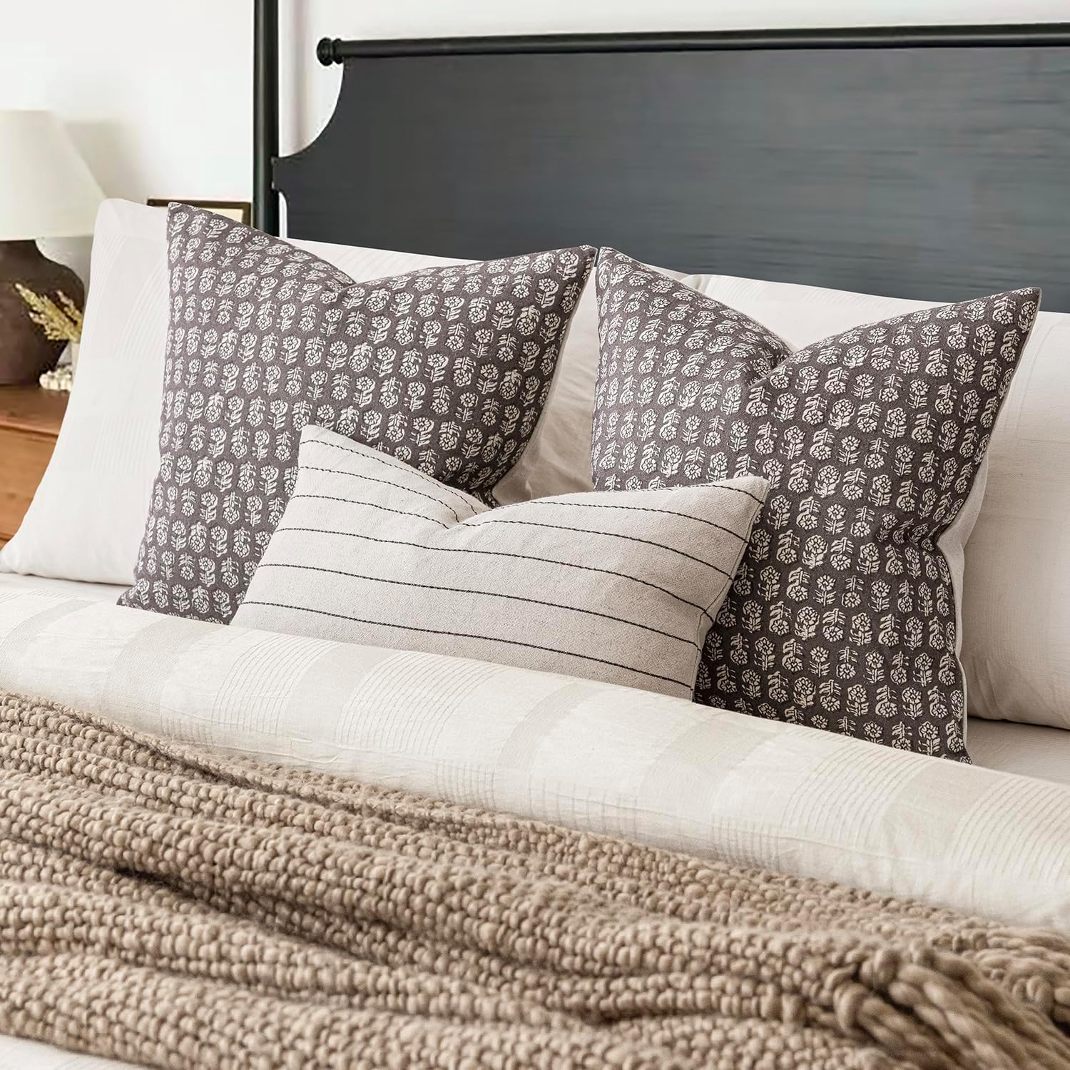 Foindtower Set of 2 Decorative Vintage Floral Print Throw Pillow Covers Neutral Modern Farmhouse Cushion Covers Boho Home Decor for Sofa Couch Chair Bedroom Living Room Outdoor,24×24 Inch,Rustic Gray