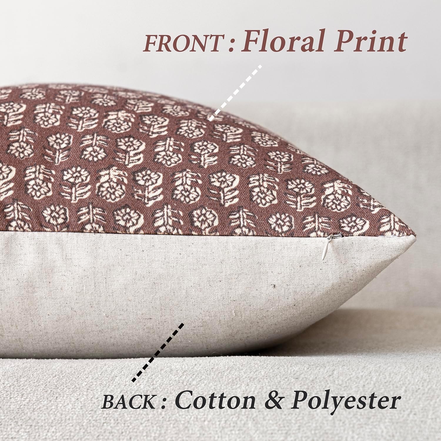 Foindtower Set of 2 Decorative Vintage Floral Print Throw Pillow Covers Neutral Modern Farmhouse Cushion Covers Boho Home Decor for Sofa Couch Chair Bedroom Living Room Outdoor,24×24 Inch,Wine Red