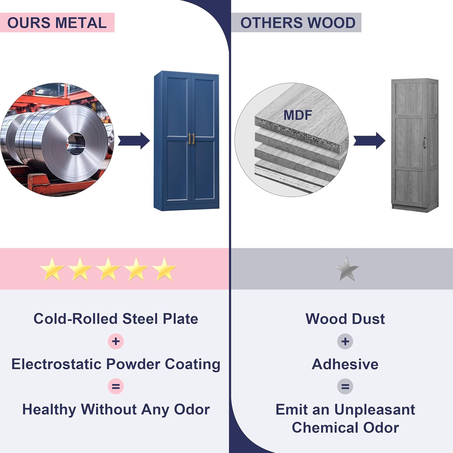 71" Storage Cabinet, Metal Pantry Cabinet, Kitchen Pantry Storage Cabinets with Doors and 4 Shelves, Cabinets for Laundry Room, Living Room, Dinning Room, Assembly Required, Blue