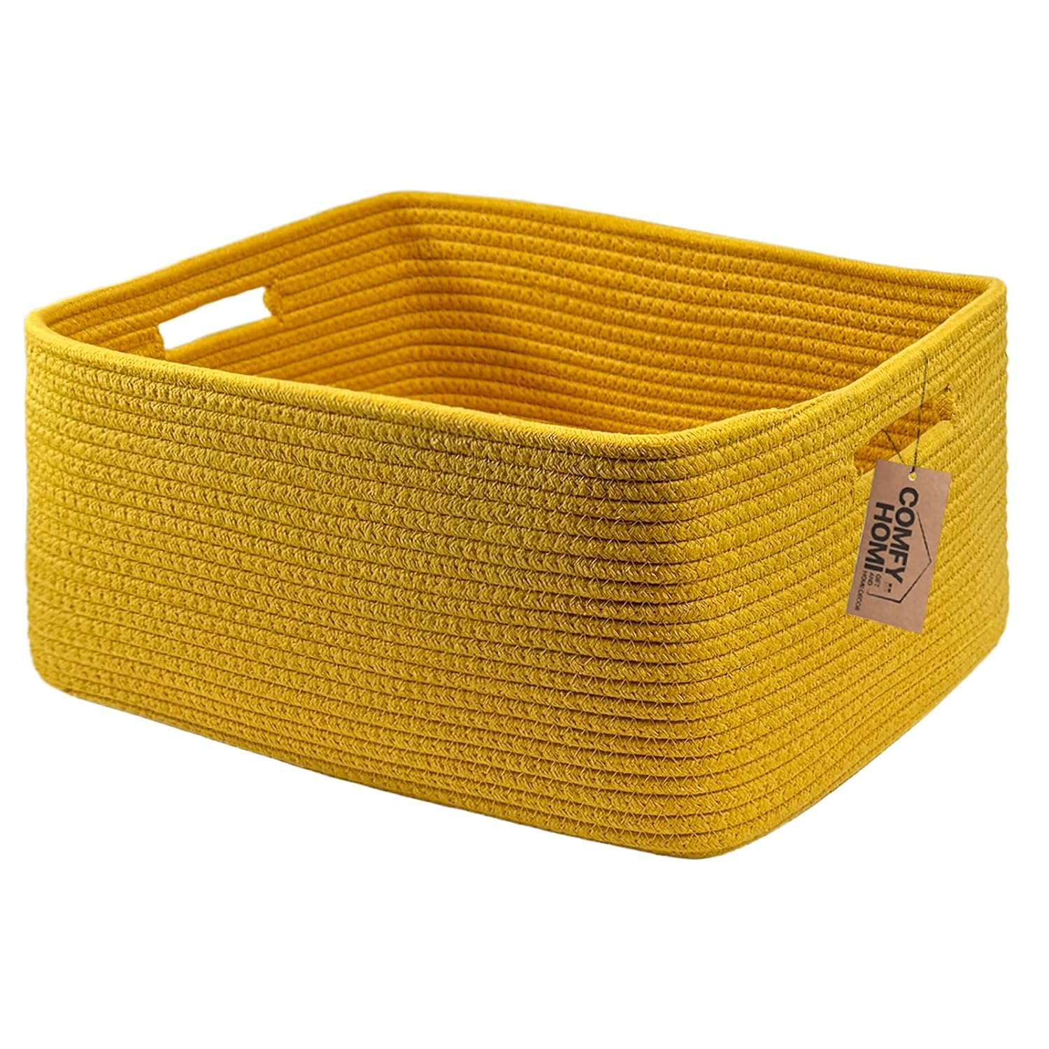 COMFY-HOMI Cotton Rope Woven Basket with Handles for Shelves,Toys,Book, Cloth Storage Baskets for Organizing-17" x 13" x 7.5" Toy Decorative Organizer for Living Room, Bathroom (Yellow)