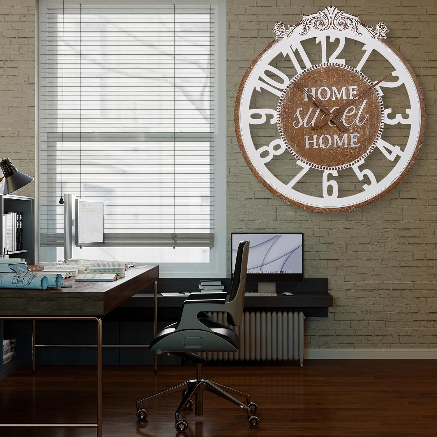- 【Rustic Farmhouse Style】 Bring vintage character to your space with this round 24-inch wooden wall clock, designed with a distressed wood finish that complements farmhouse, cottage, or rustic-themed décor.