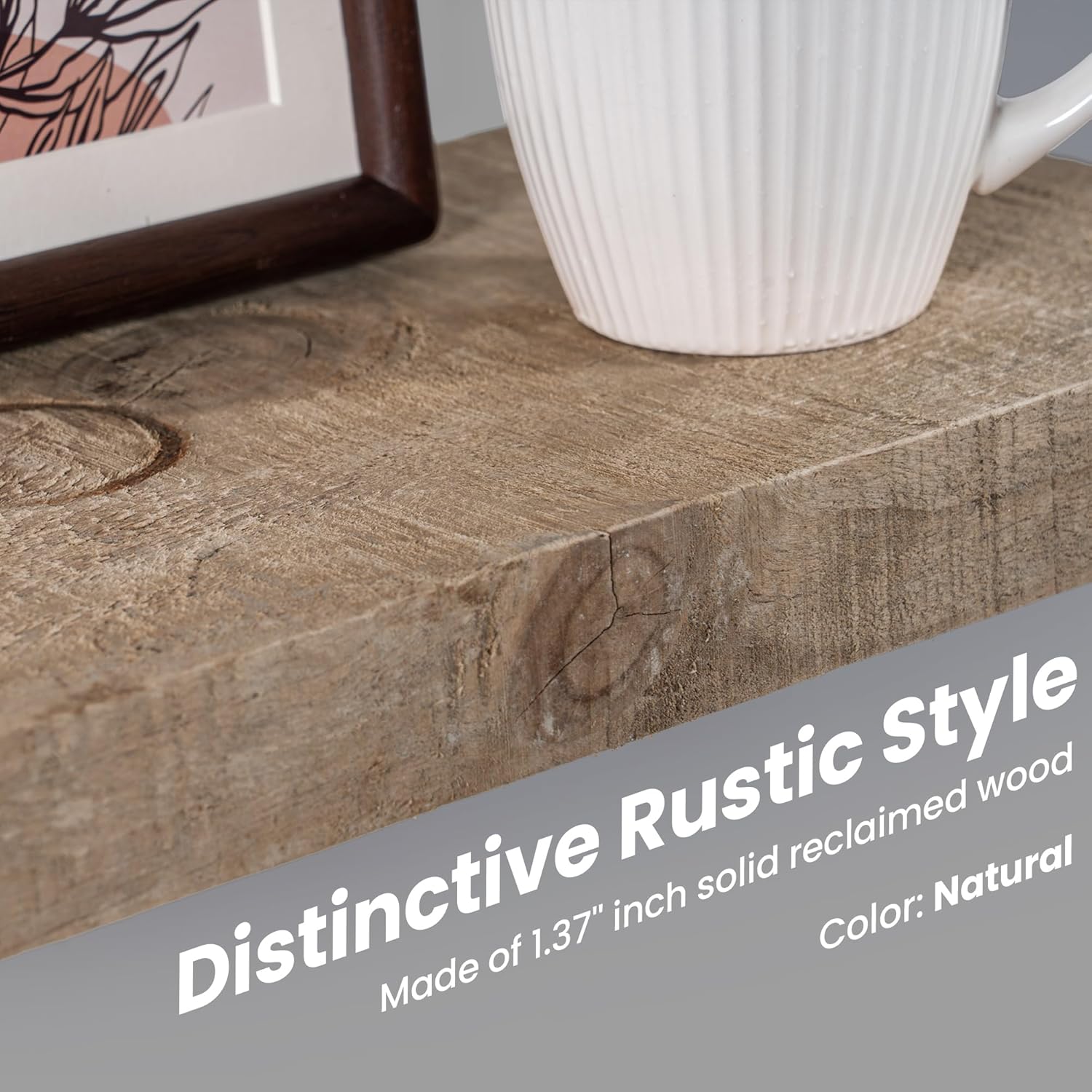 • Fast & Easy Installation - With our included detailed instructions, you can have your new long hanging floating shelves up and ready to use in just 10 minutes. Each package comes with a level, screws and anchors for installation, two hand-crafted reclaimed wood shelves, and two metal brackets. Our dedicated customer support team is always available to assist with any questions or issues you may have