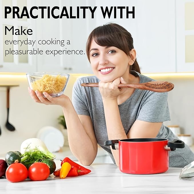 - 【 9-Piece Wooden Spoon Set 】 A complete set of Wood kitchen utensil, equipped with all basic cooking tools, spatula, salad spoon, salad fork, fried spatula, soup spoon/ladle, strainer spoon, spaghetti spoons, mixing spoon/serving spoon, strainer spoon/skimmer spoon there are various practical sizes, and these practical and classic tableware cover daily kitchen cooking needs from mixing to cooking.