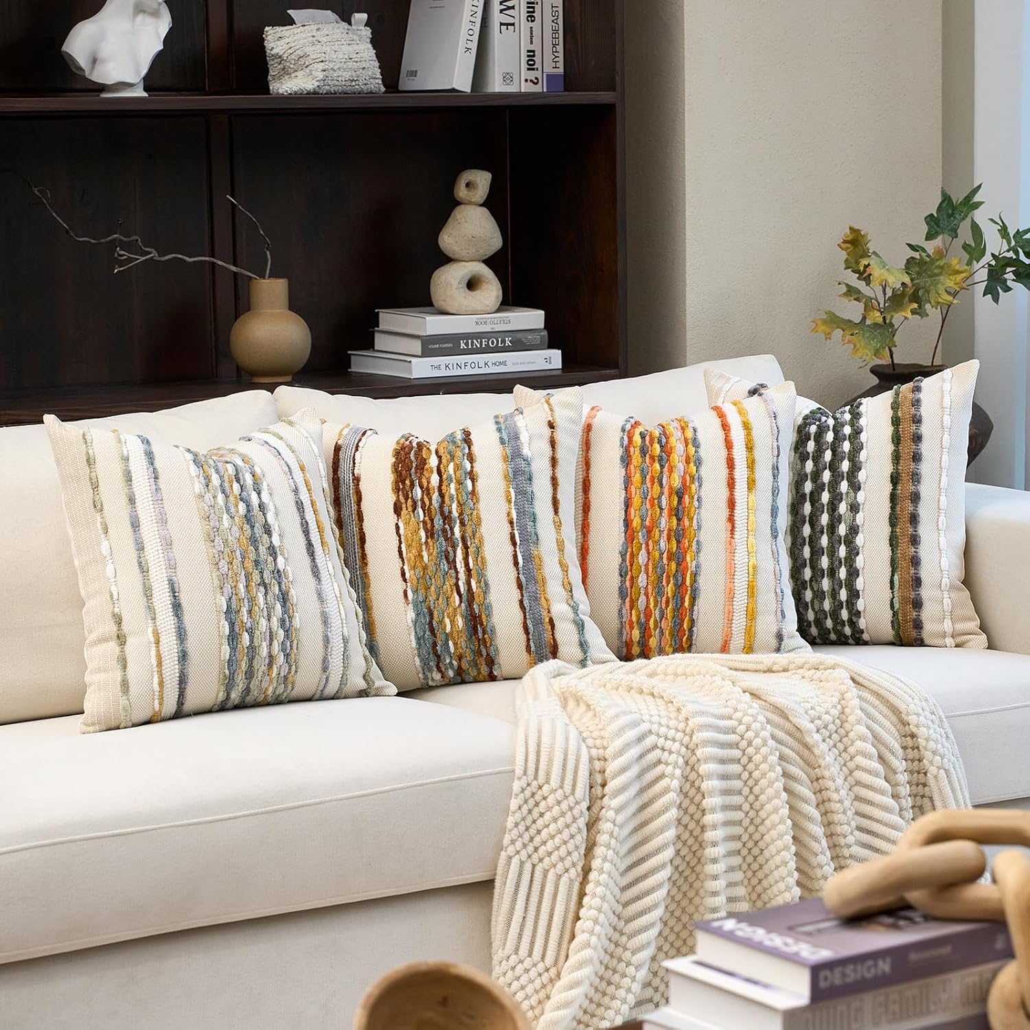 - 【Design】The unique striped pattern of pillow cover is designed by Aeckself Brand Designer. The Bohemian style is full of freedom, romance and unrestraint, which can add a unique artistic atmosphere and personal charm to the home. The striped design is simple and full of rhythm, with strong visual impact and can become a highlight in the space.