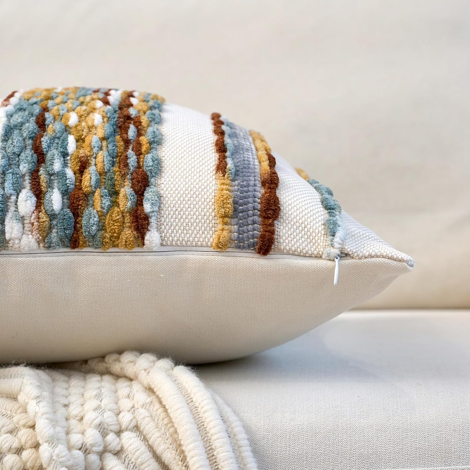 - 【Design】The unique striped pattern of pillow cover is designed by Aeckself Brand Designer. The Bohemian style is full of freedom, romance and unrestraint, which can add a unique artistic atmosphere and personal charm to the home. The striped design is simple and full of rhythm, with strong visual impact and can become a highlight in the space.