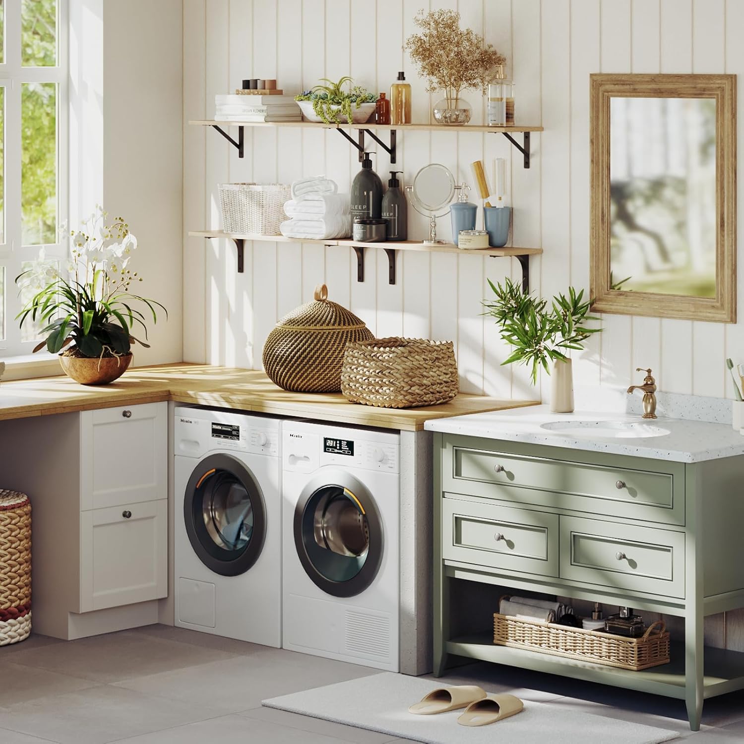 • 【Wide Application】The shelves for wall storage is gospel of small family to enjoy the tranquility of home. The large floating shelves allow you to store books, games, decorations, plants, towels, photos, etc. Creating extra storage in living room, bathroom, bedroom, closet, balcony, study, kitchen, laundry, bar area, pantry and office, etc