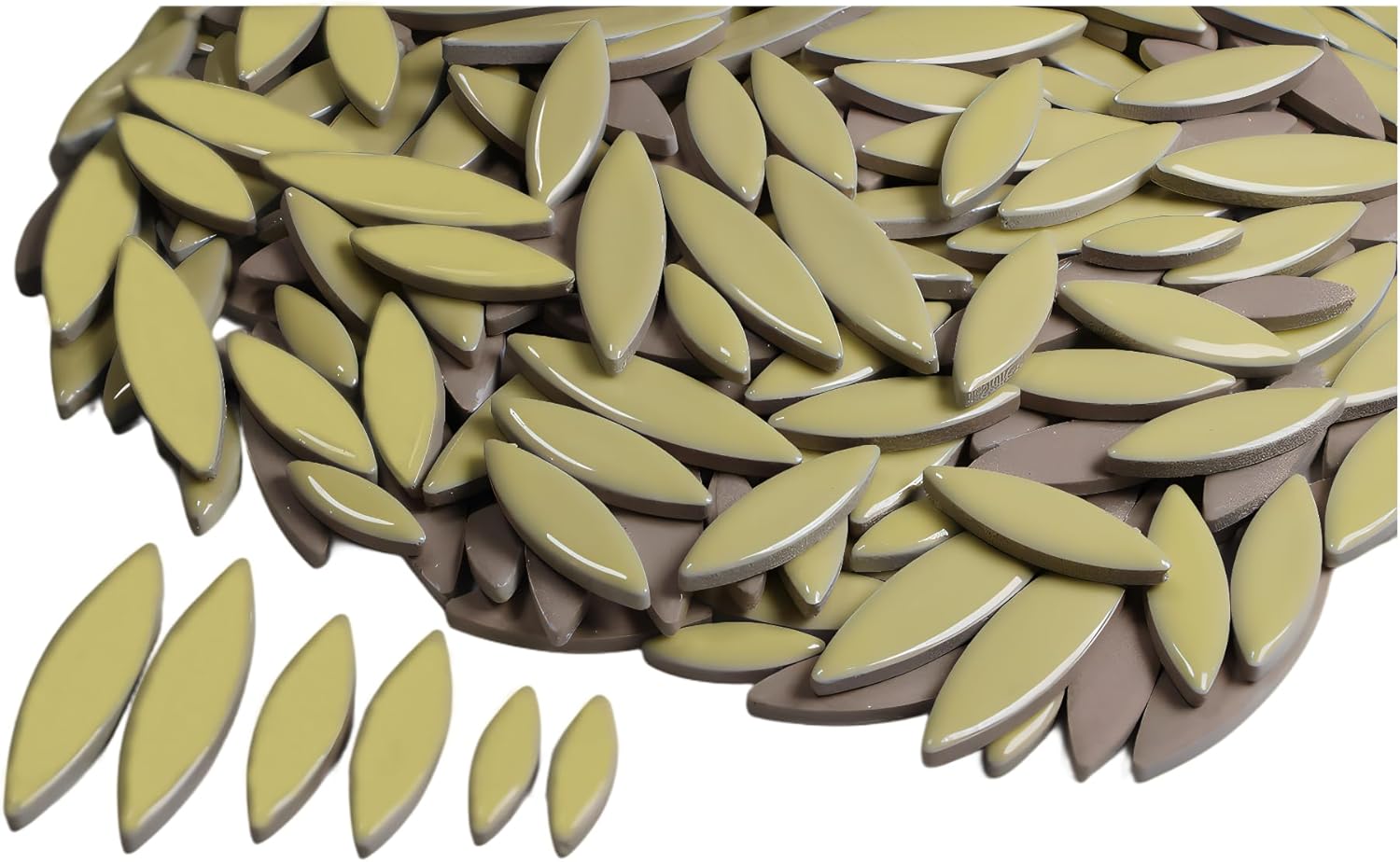 VerzTile Mosaic Tiles for Crafts - Petal Shaped Ceramic Tile Craft Hobbies & Art Projects 39 Color Options Endless Creativity DIY Design (Pale Yellow)