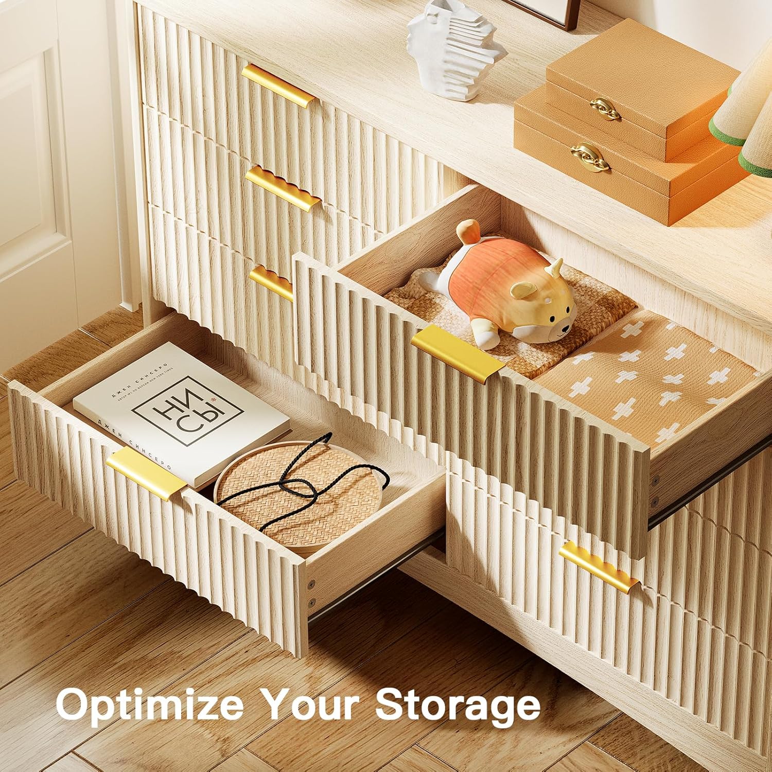 - Modern Fluted Design: Add a touch of sophistication to your space with this tall fluted dresser. The elegant wave-textured drawer fronts, sleek metal handles, and rounded corners blend style and safety—perfect for bedrooms, living rooms, or entryways.
