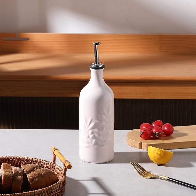 Sweejar Ceramic Olive Oil Dispenser Bottle, 20 Oz Relief Opaque Oil Cruet Protects To Reduce Oxidation, Suitable for Storage Vinegar, Soy Sauce,Liquids,Set of 1 (Rose Pink)