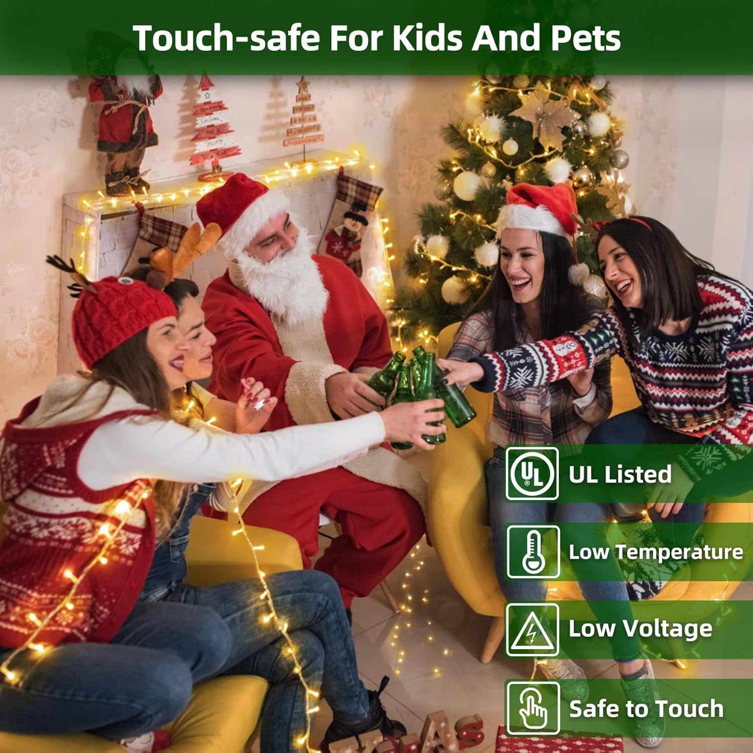 - Built for Families & Energy Savings: Many parents worry about kids or pets touching led string lights. That’s why our UL-certified low-voltage LEDs stay cool, even after hours of use. Safe for indoor trees, mantels, or kids’ bedrooms. Plus, the lights use 90% less energy than traditional bulbs—keeping your electric bill low while still giving you the brightest display in the neighborhood