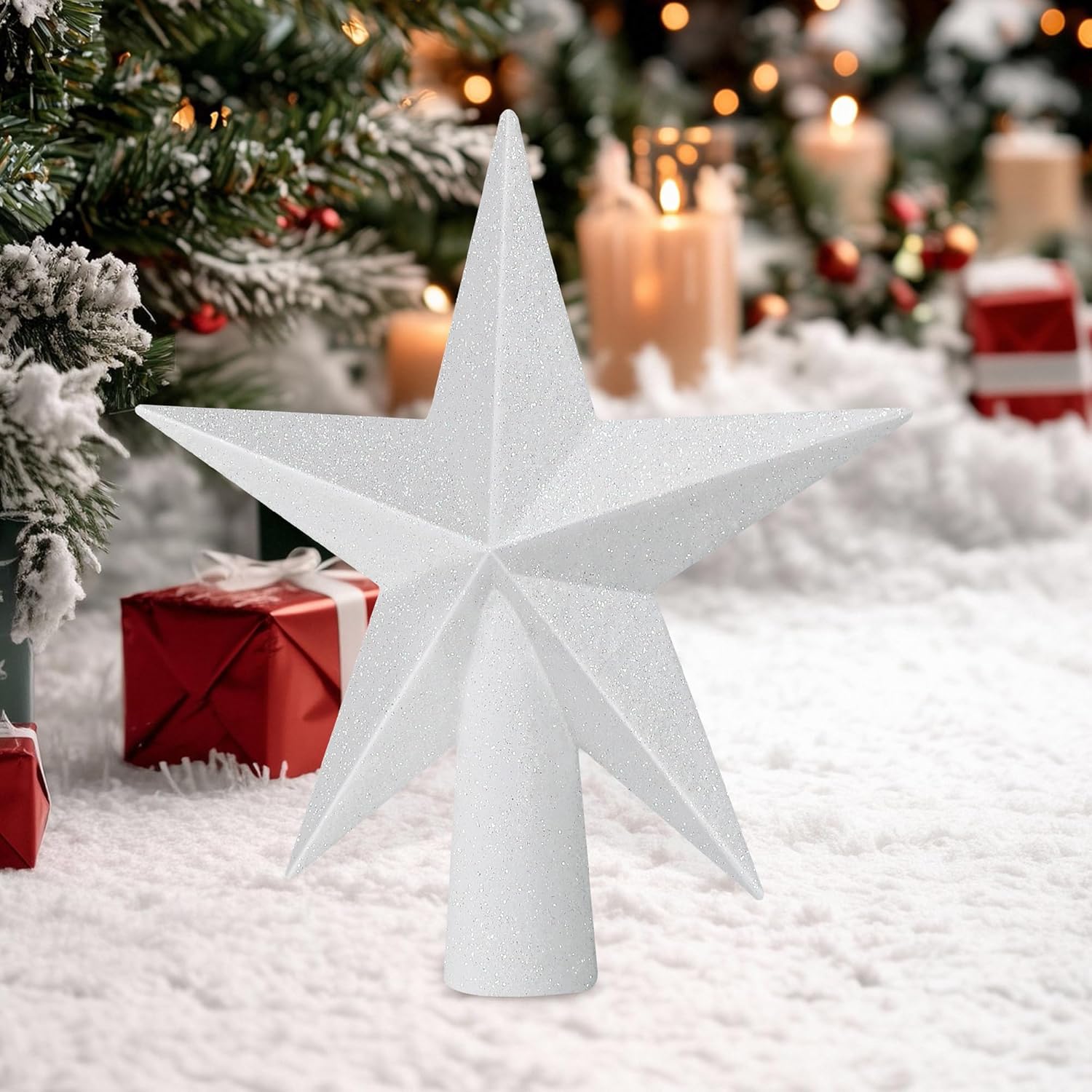 Christmas Tree Topper, 1PCS 6" White Glitter Star Tree Topper, 3D Xmas Shatter-Proof Mini Bethlehem Star Tree Topper Decorations, Waterproof Christmas Decor for Holiday Home Outdoor Ornament