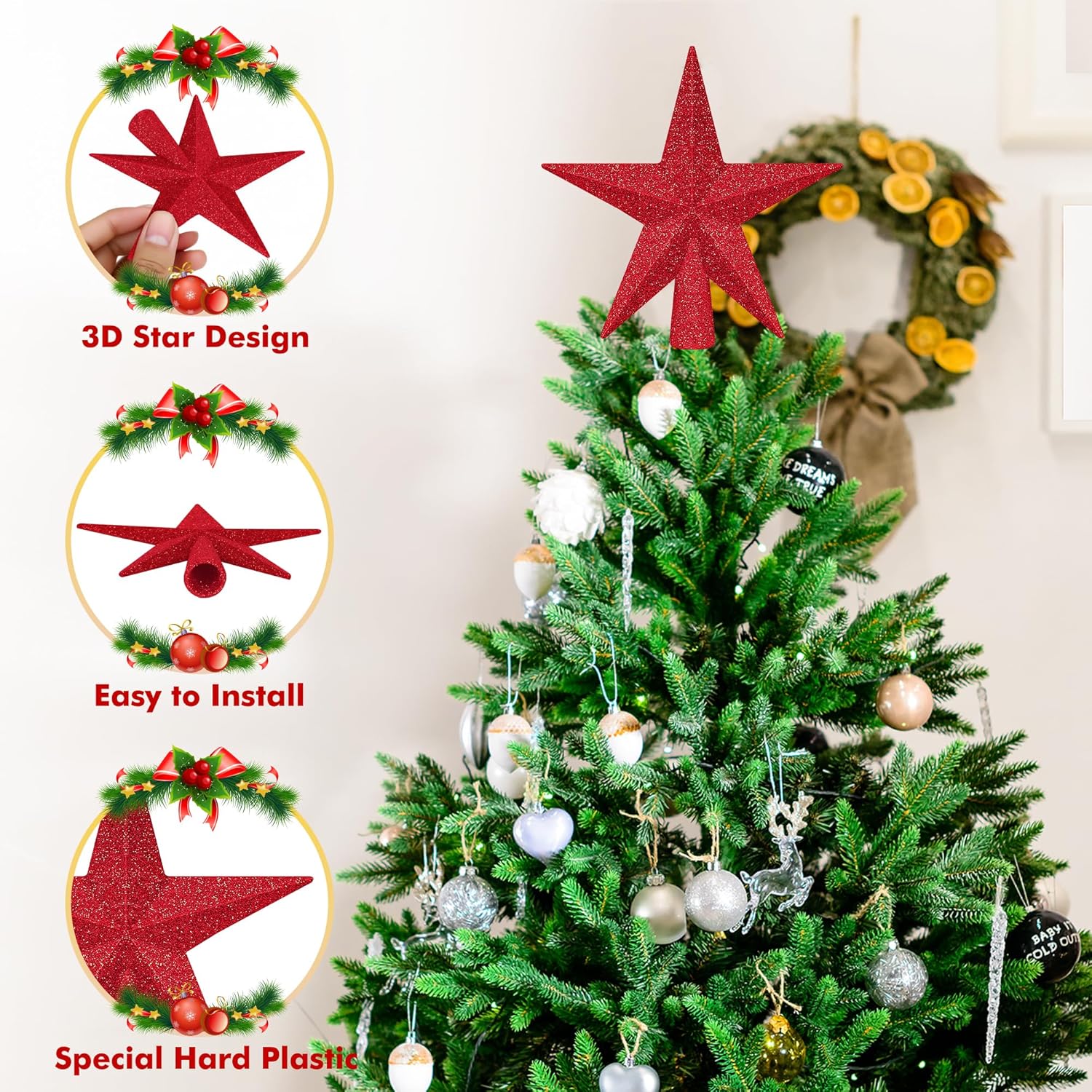 - Broadly Applicable - Use our tree topper star to adorn homes, offices, restaurants, and any Christmas-themed event, adding a touch of holiday spirit.