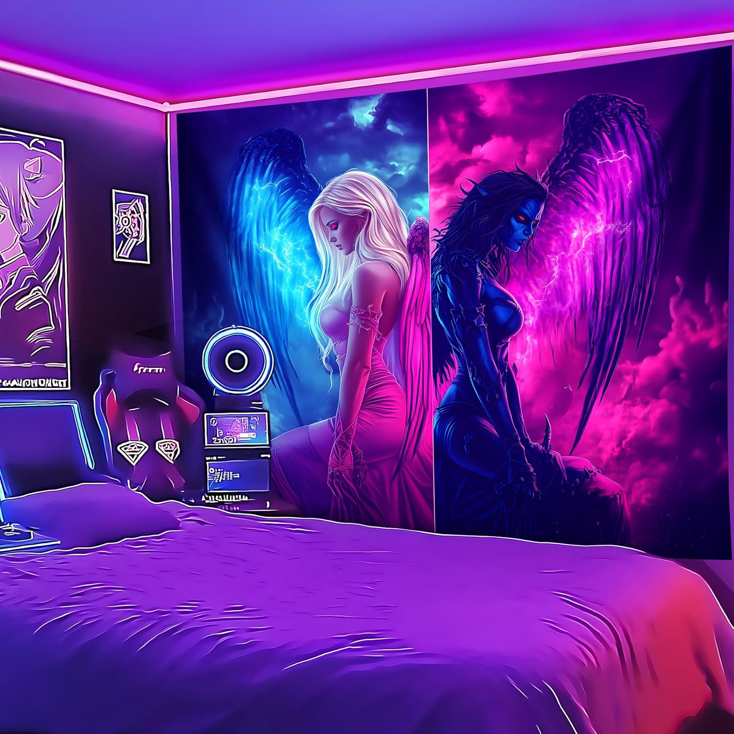 - 【Blacklight/UV Reactive】 Due to the special ink and advanced technology, the blacklight wing tapestry's colors can be changed under Black Light or UV Reactive Light. You can enjoy different effects by kinds of light, the tapestry will be amazing. Under normal light, the colors are also beautiful.