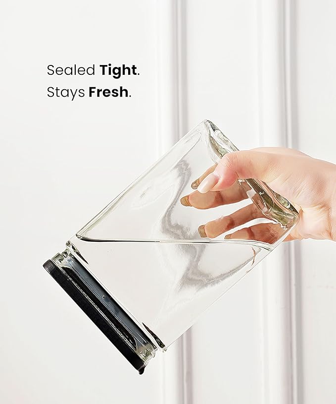 - 【Sleek Rectangular Space-Saving Design】Crafted with a modern rectangular shape, these 6 glass jars maximize pantry, cabinet, or countertop space while offering a tidy, uniform appearance. The clear glass body lets you quickly identify contents (flour, pasta, snacks, crafts) without opening the lid.