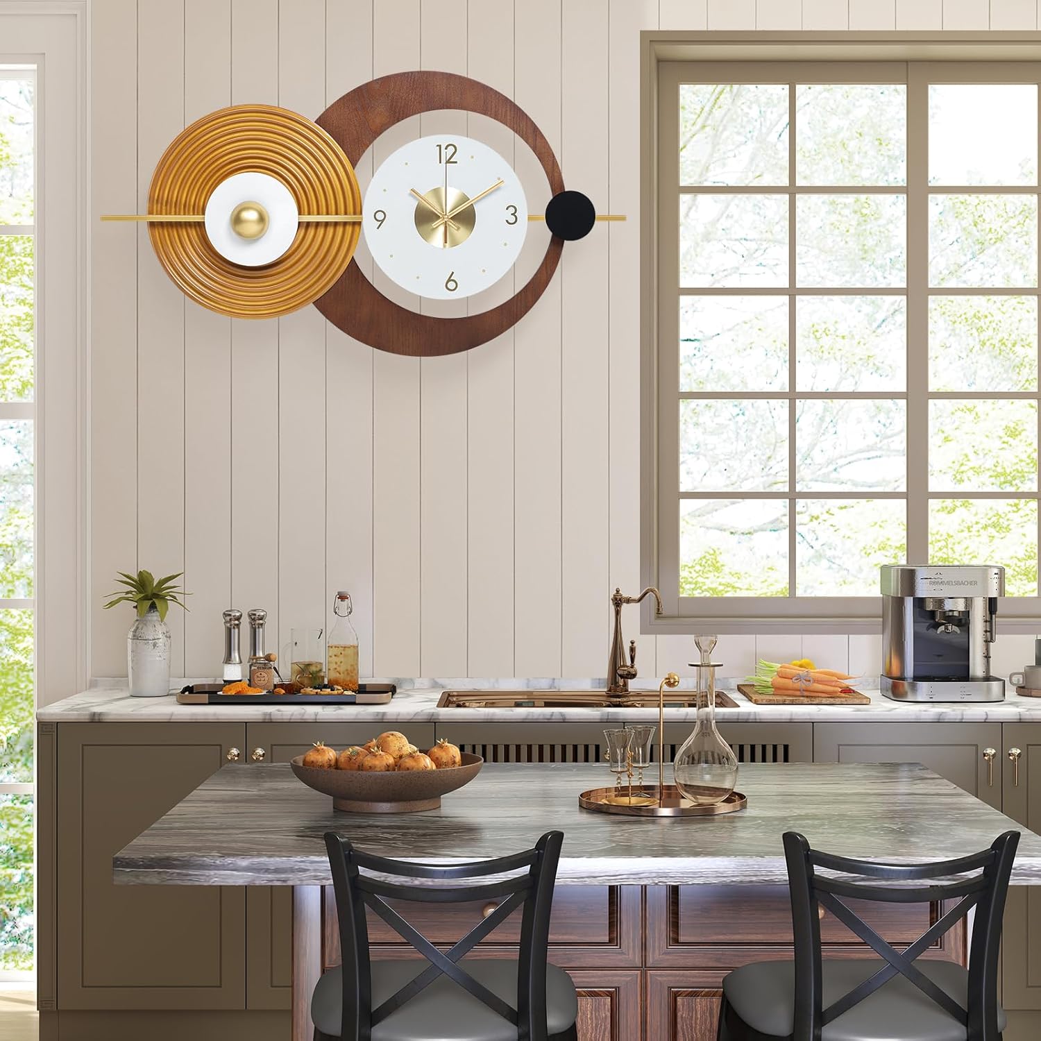Wall Clock Modern Battery Operated Big Clocks Metal and Wooden Nordic Style Large Wall Watch Decorative Timepiece Perfect for Home,Living,Bedroom 23X15inch