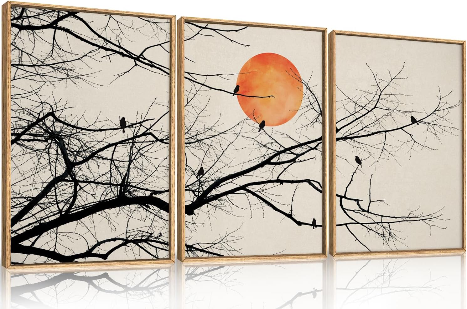 - 【Large Vintage Tree Branch Wall Art Set】This large vintage tree branch framed canvas wall art set executed in a charming nature style, captures tree branches and sun, evoking an poetic atmosphere. Its modern aesthetic is reminiscent of nature charm. Utilizing this artwork as part of your decor will make your room full of poetry.