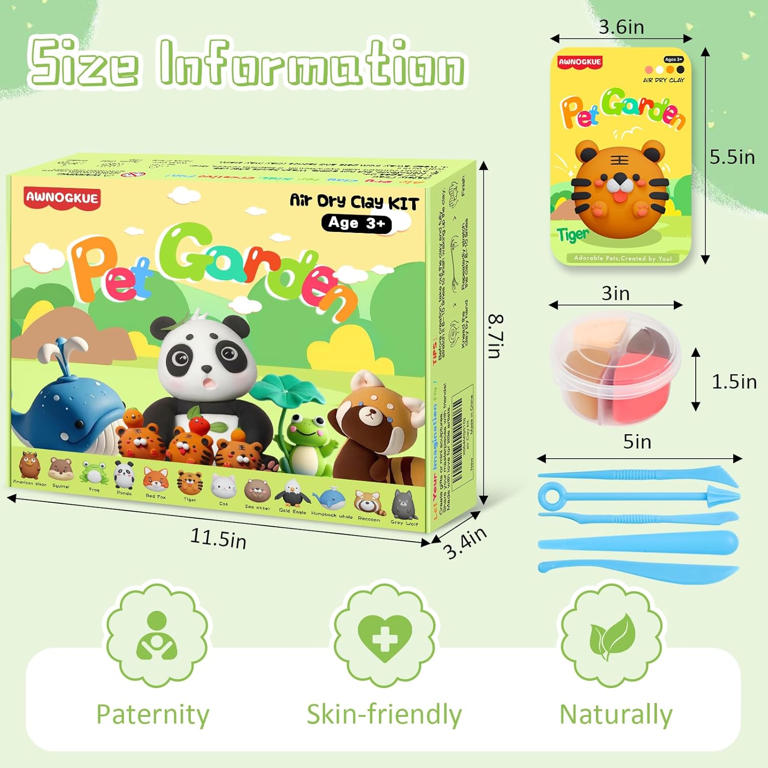- Included Components : 12 individually wrapped boxes of 4-color clay, 5 sculpting tools, simple 6-step tutorials
