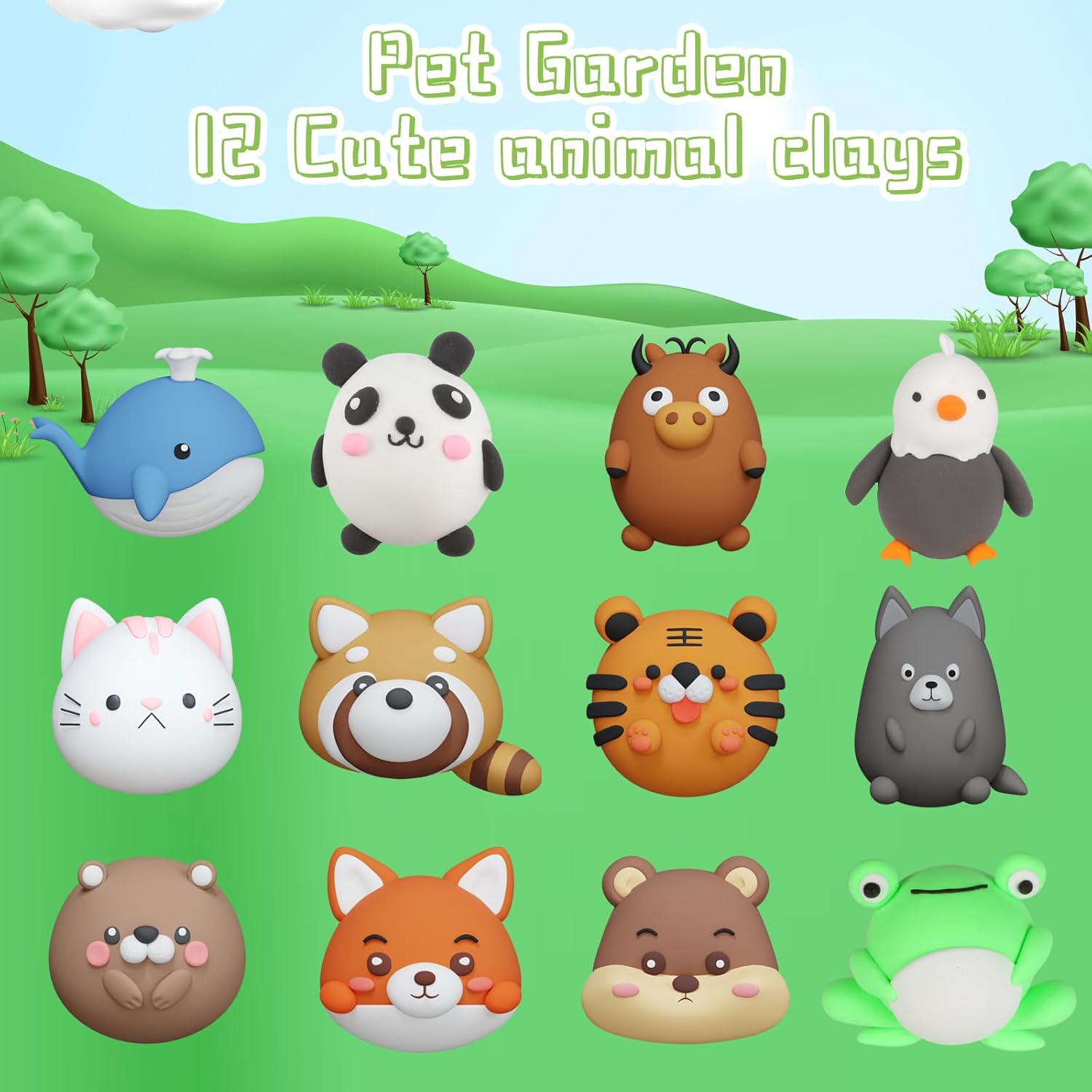 - 【modeling clay for kids】:This air dry clay kit includes 12 individually wrapped boxes of 4-color clay and 5 sculpting tools. Each box of clay has a simple 6-step tutorial on the back to squish into a cute animal pet (bald eagle, American bison, red fox, grey wolf, panda ). This magic model clay allows kids to create a colorful pet garden, having endless fun!