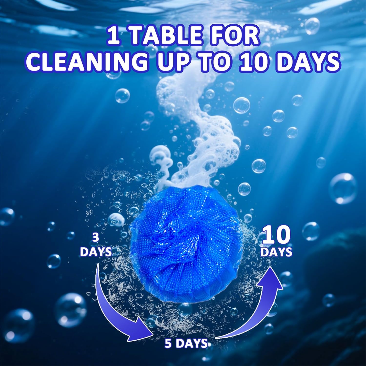 - EASY TO USE: Simply take one blue toilet tablet out of the box and place it in the toilet tank. Then, let it fully dissolve for at least 20 minutes until the water turns blue before flushing. (Please note, do not remove the water-soluble blue protective film) It will not cause any damage to the inside of the septic tank and toilet tank.