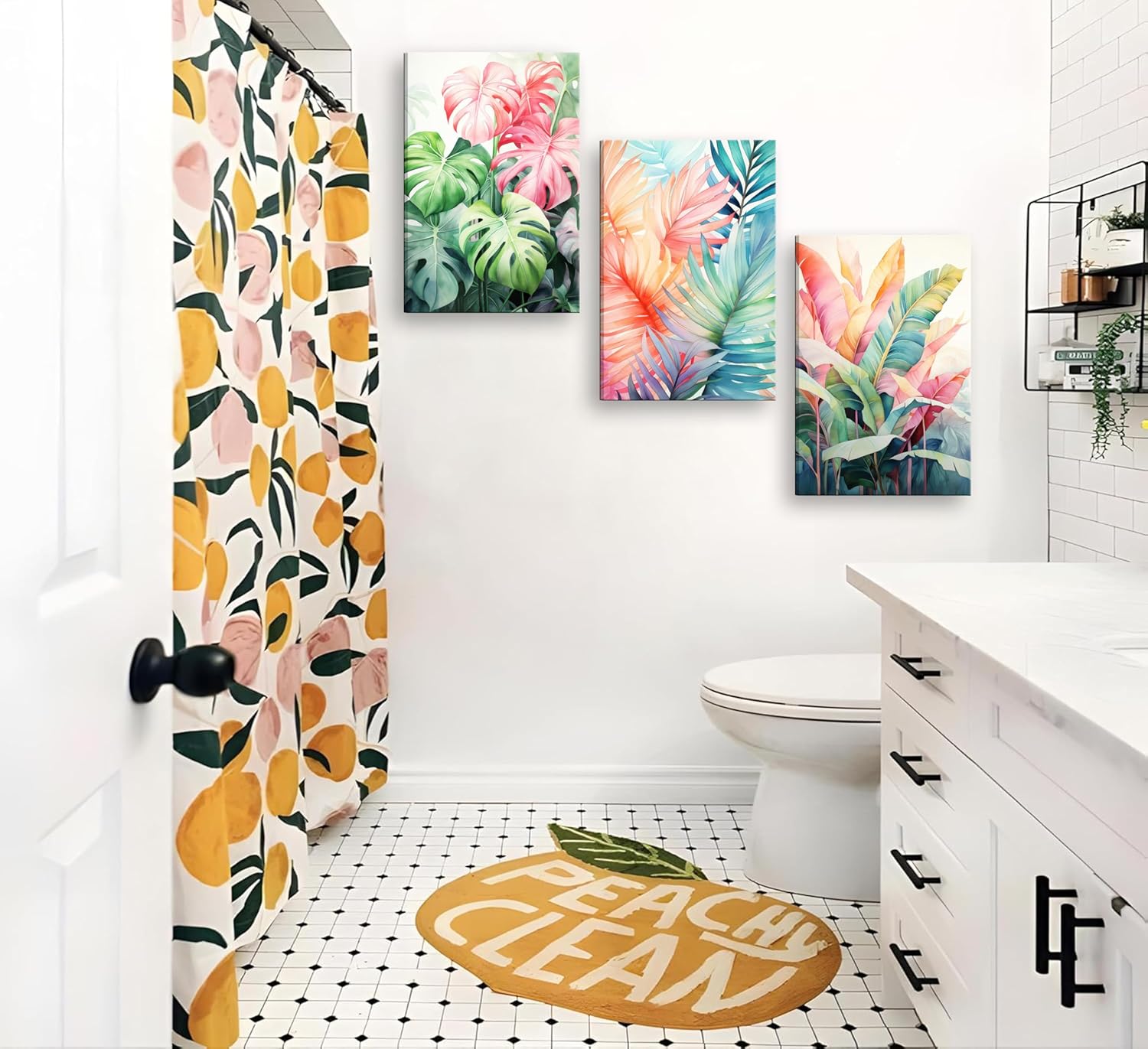 3pcs Framed Tropical Botanical Canvas Wall Art Monstera Leaves Posters Botanical Prints Bohemian style Wall Decor Pictures Palm Leaves Paintings for Bathroom living room Decoration