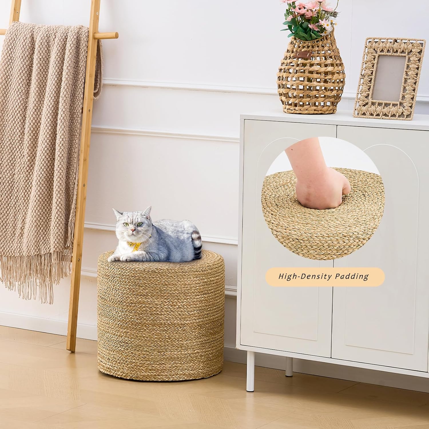- ăNatural Water HyacinthăCrafted from natural water hyacinth, LGENHOOM pouf brings a warm, organic look and feel to any space.