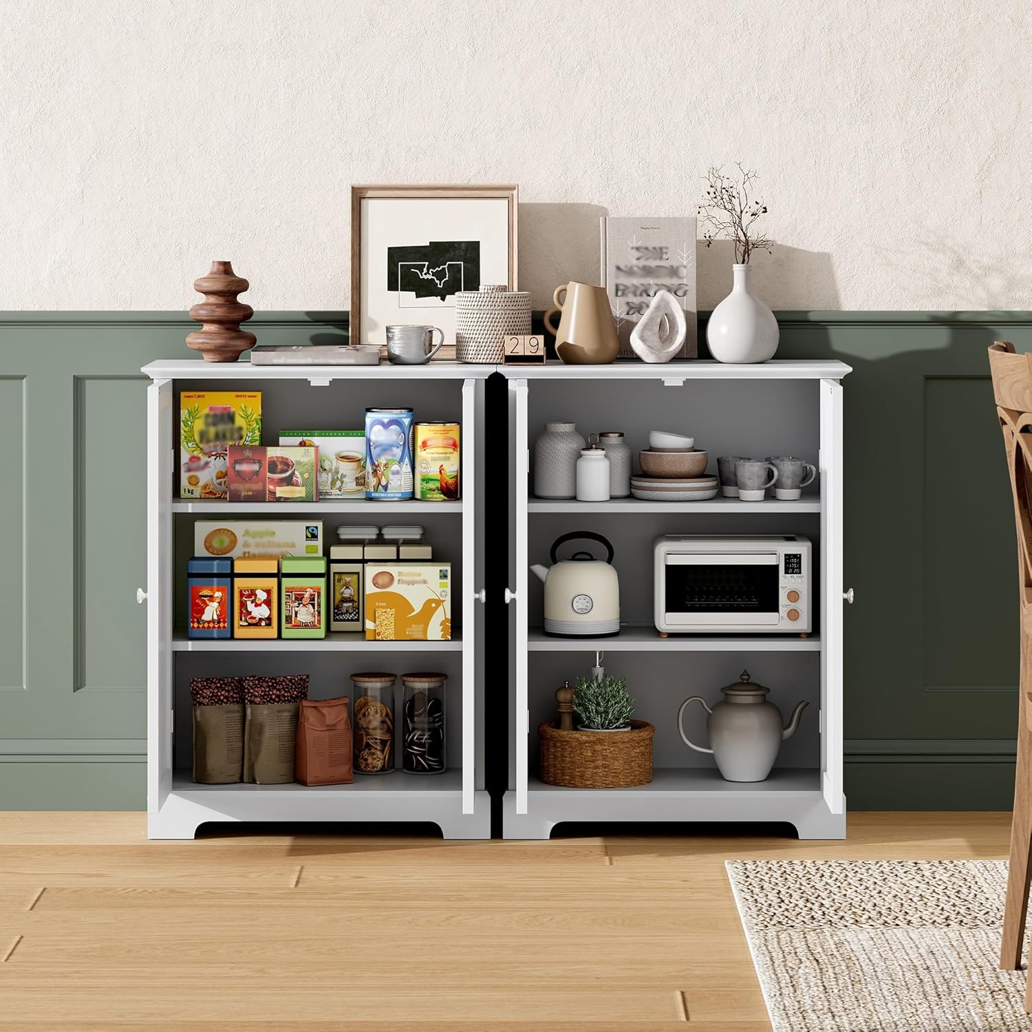 - 【Ample Storage Space】This white storage cabinet features 2 doors and adjustable shelves, each offering 3 height options. Effortlessly store towels, toiletries, cosmetics, and other items of varying sizes in bathrooms, living rooms, or kitchens