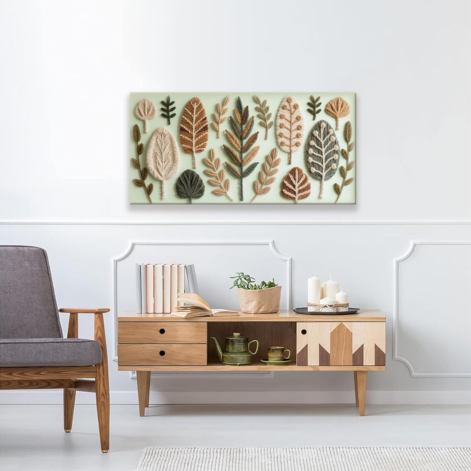 Boho Wall Art Chic Home Wall Art Modern Bohemian Feather Green Canvas Wall Art Decor For Apartment Dorm Living Room Bedroom Nursery Backdrop 20"W X 40"L Ready To Hanging