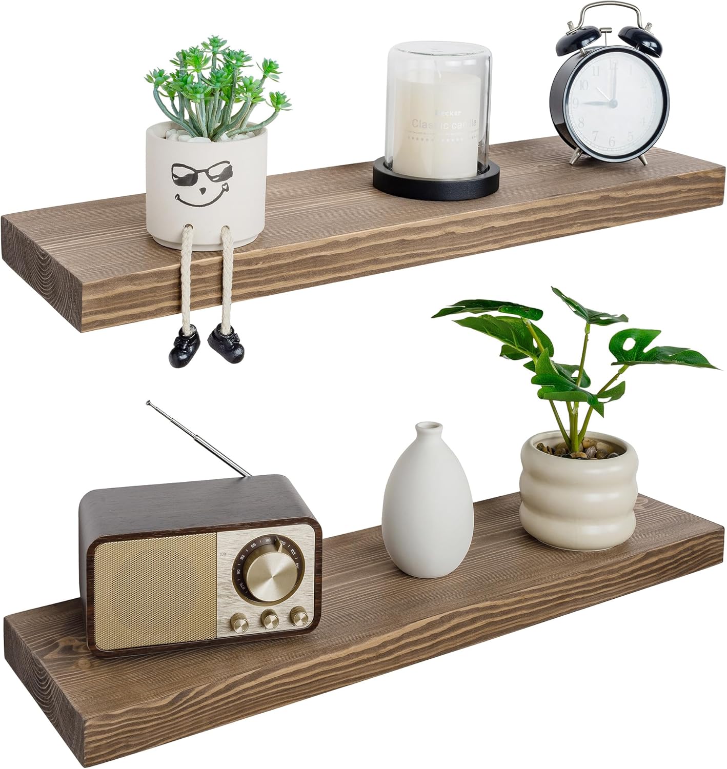 - MULTIFUNCTIONAL DECORATIVE SHELVES: Modern rustic style floating wall shelves are suitable for a variety of scenarios. Use it in the kitchen to store spices, bottles, cups; install it in the bathroom to store shampoo, conditioner, body wash and more. Also perfect for bedroom, living room, office, etc., beautiful and space-saving