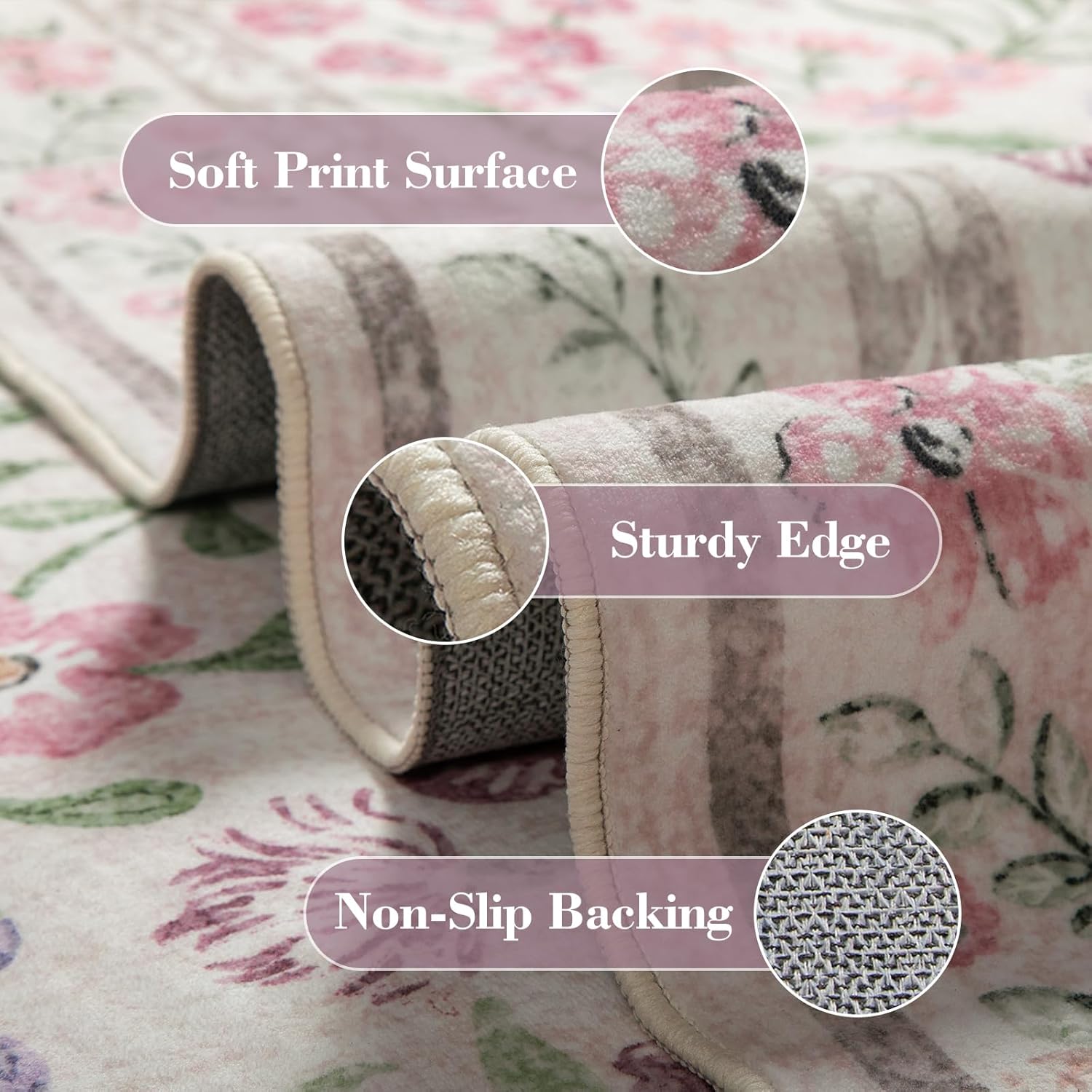Wonnitar Purple Floral 8x10 Area Rugs, Washable Rug for Living Room, Soft Ultra-Thin Non-Shedding Large Indoor Boho Carpet for Bedroom Nursery Playroom Classroom Decor, Light Purple/Pink