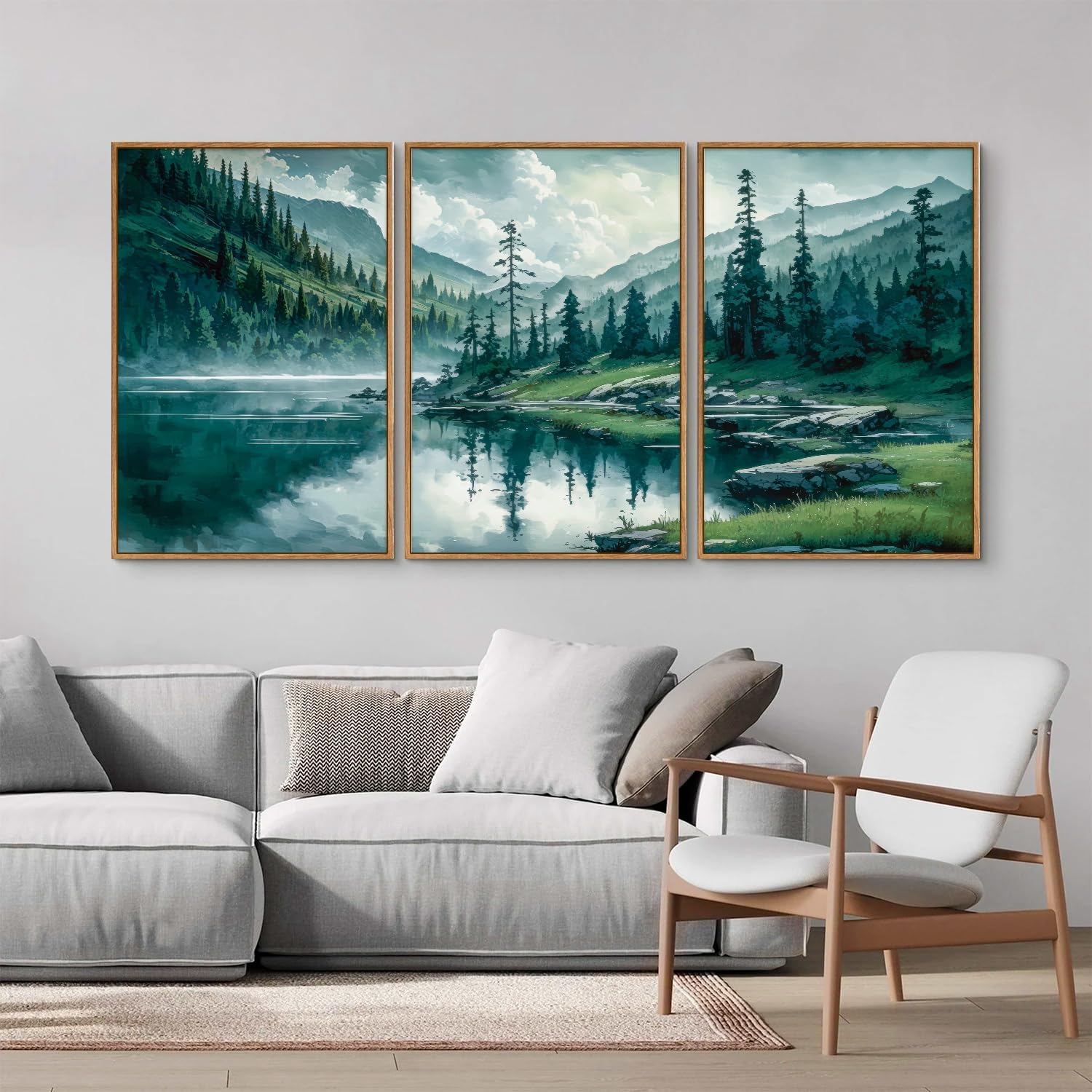 - Tranquil Forest Retreat: Immerse yourself in the serene beauty of nature with this stunning set of 3 framed canvases, featuring peaceful lake and mountain scenery that calms the mind