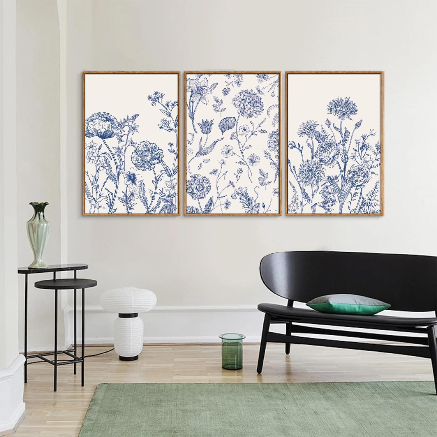 - Elegant Chinoiserie Design: Transform your space with this exquisite set of 3 framed canvases featuring classic chinoiserie floral patterns, adding a touch of sophistication to any decor