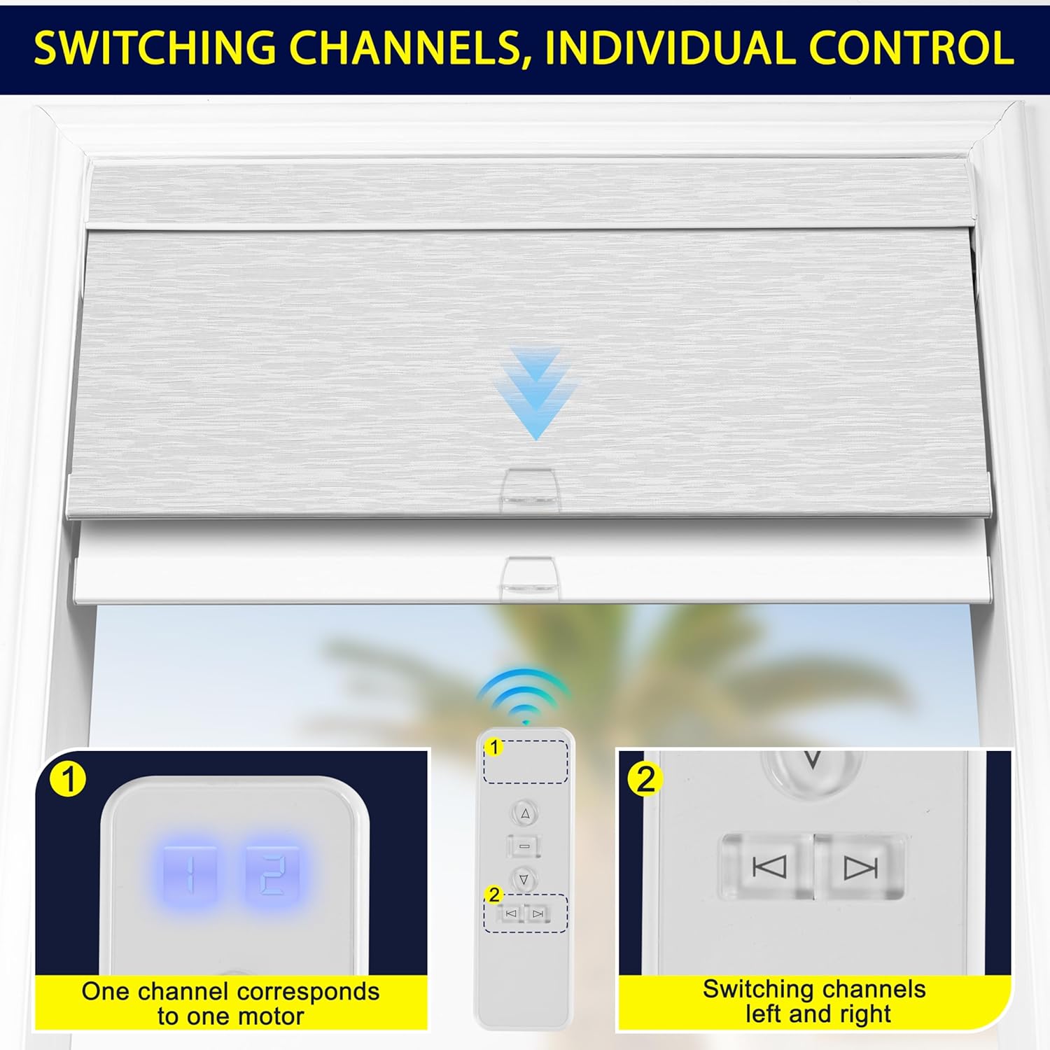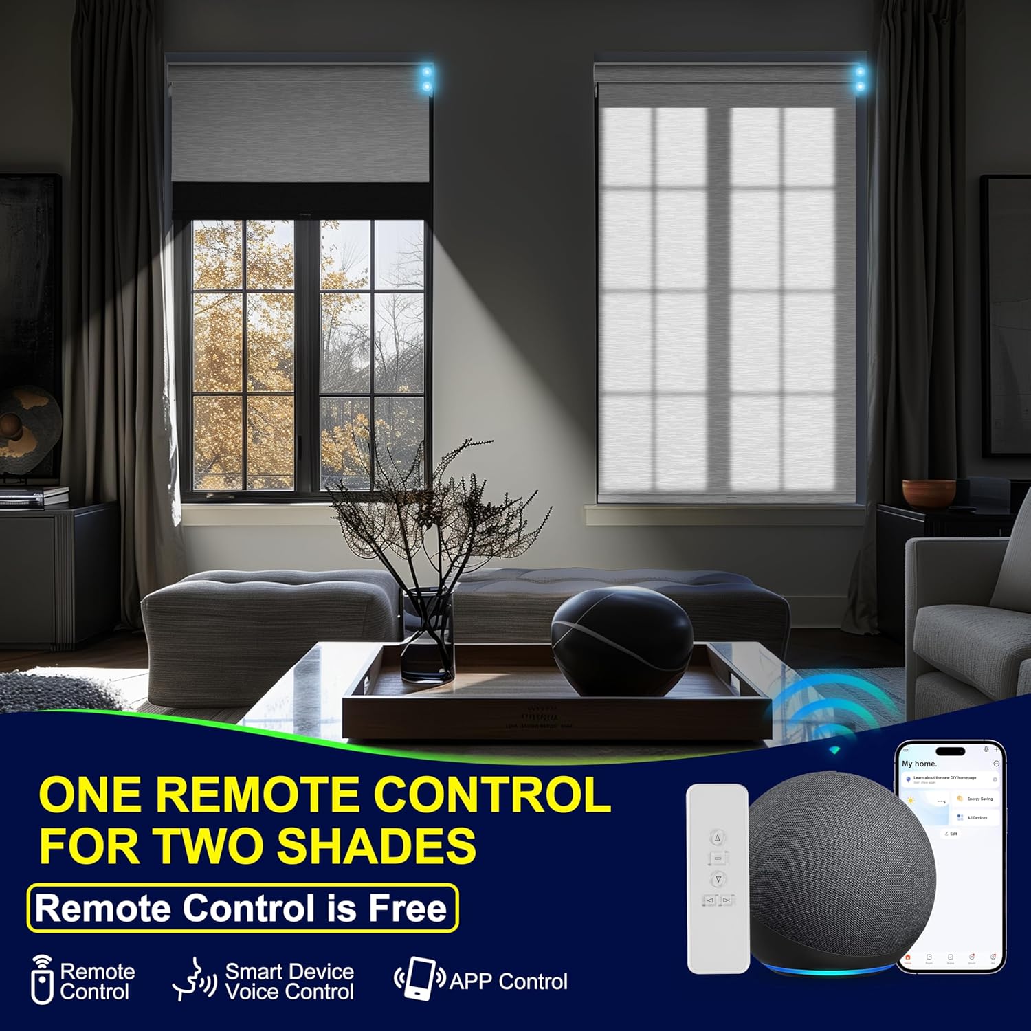 - 【Smart Control】Automatic roller blinds can be voice controlled, APP controlled, remote controlled.The remote controller is compatible with all three motors, providing the ultimate in convenience and control for your windows. It can control up to 6 blinds with group control feature. The signal transmission distance of the remote control can reach up to 80 meters without obstacles and 20 meters through walls or floors.Let you experience the convenience of automatic roller shades.