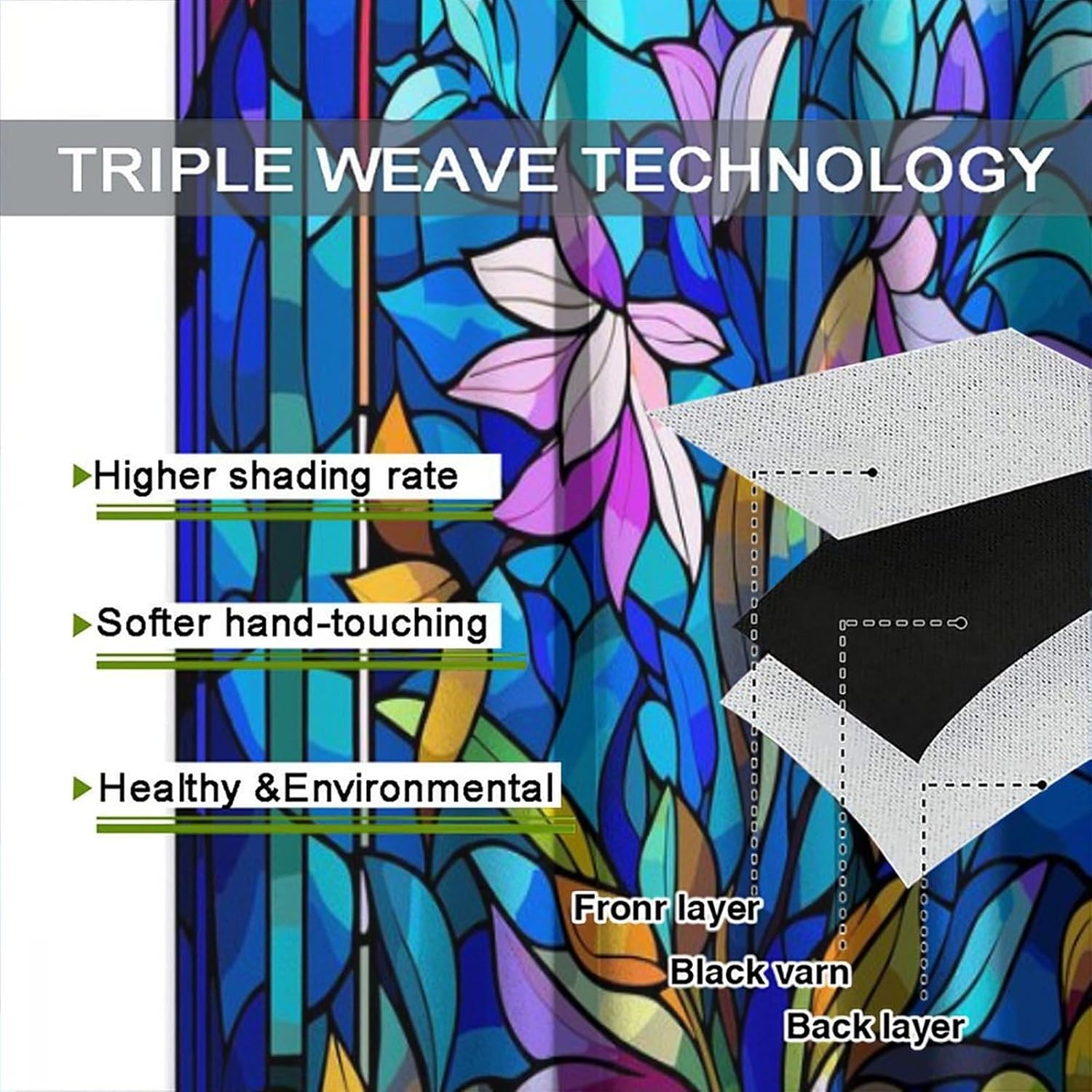 Stained Glass Curtains,Abstract Colorful Floral Geometric Art Home Decor Drapes for Bedroom Living Room Kitchen Window Treatment 2 Panels Set Total Size 55" W X 63" L Inch